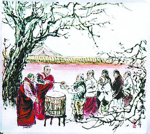 宮廷盛事猶佳話 臘八粥香朝中雅 皇帝會賜文武臣 發放米果供僧伽
