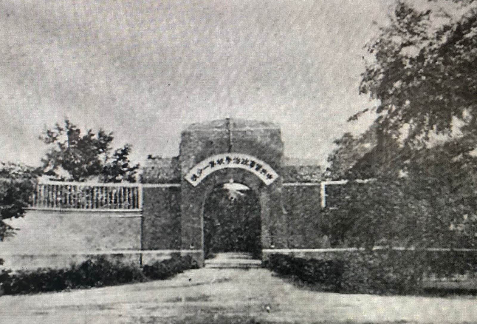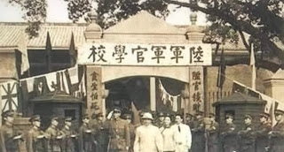 回到李家村,進入新建的校區,迎面是鋼筋水泥的校門,威嚴聳立.校門上方是校名"中央陸軍軍官學校第六分校",兩邊牆上有"親愛","精誠"(軍校校訓) 四個大字,校門兩邊有對聯: 升官發財請走別路,貪生怕死莫進此門, 望之令人心生豪邁.