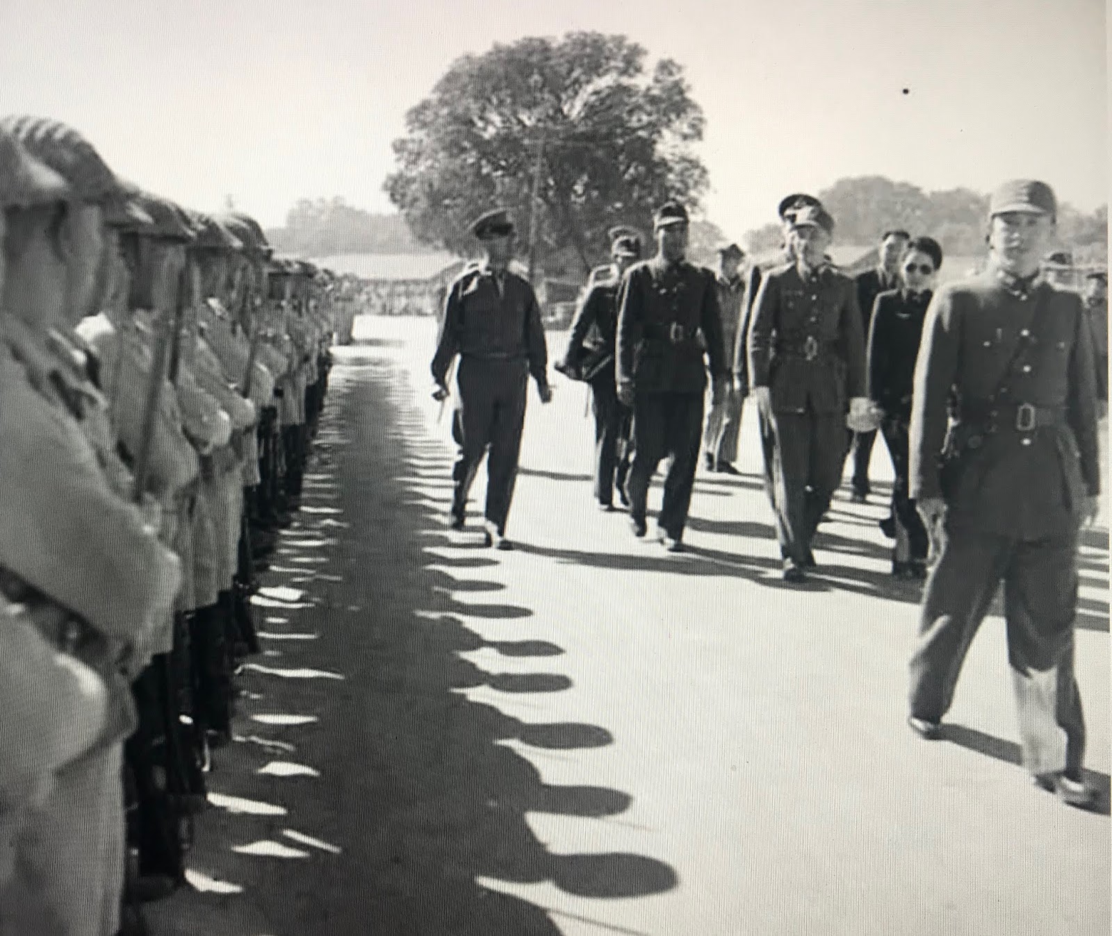 蒙巴頓陪同蔣中正夫婦檢閱藍姆伽軍容