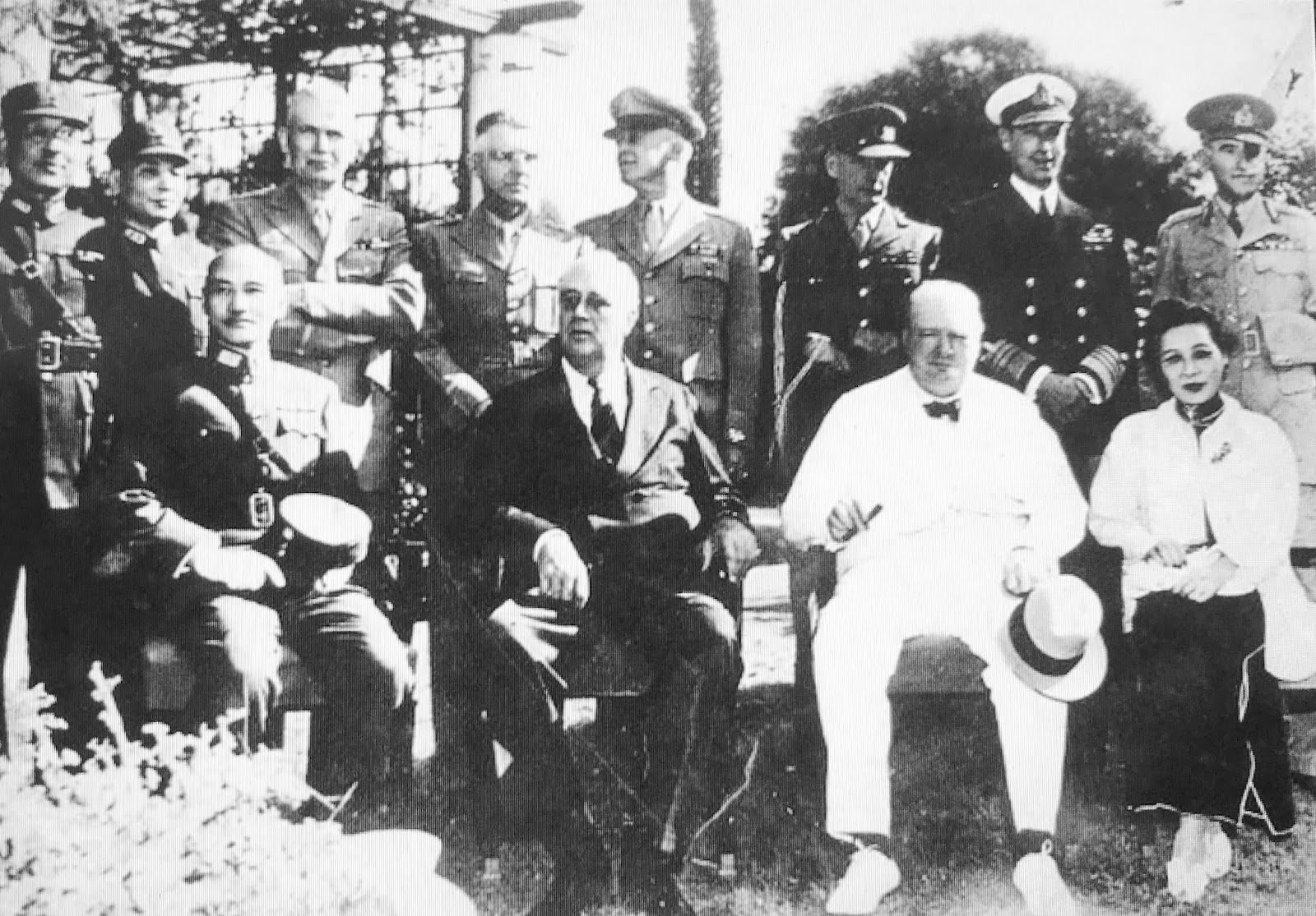 蔣中正夫婦與羅斯福及邱吉爾在開羅雅爾達簽協定