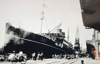 當近萬人擁入船上時,台安輪已是數倍的超載,人人都貼身接背,擁擠不堪了.父親忙著安置團裡的人員,巧遇船上的三副,是位大埔鄉親,願把他自己在甲板面的小艙間租給我們.真是要感謝老天,在這艱難的時刻,如此關愛我們.與我同船的476團的眷屬有薛團長太,醫官太,陸連長太和梁子平連長太(父親是他倆的證婚人),都分別在船上有了著落.伍仕傑自然也登上了船,和我們同舟共濟.