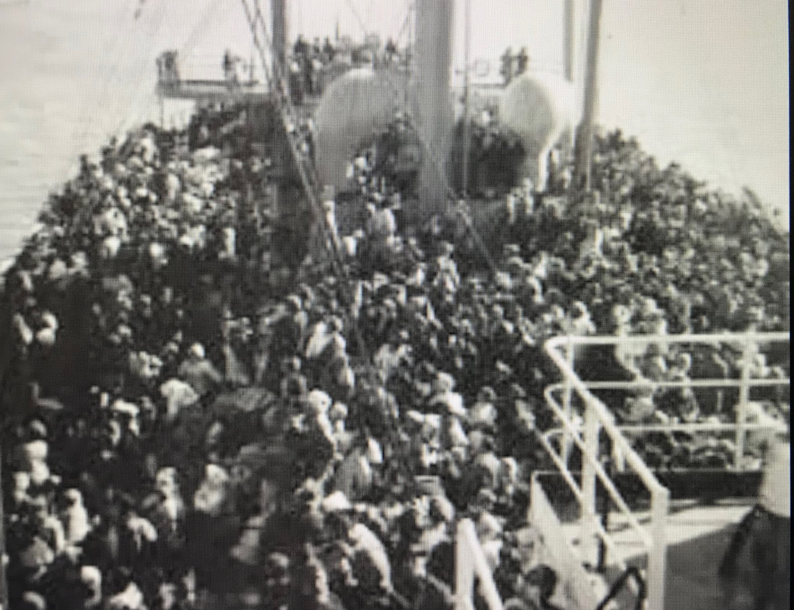 國軍自海南島撤退,及前往台灣的船艦上人員擁擠景象