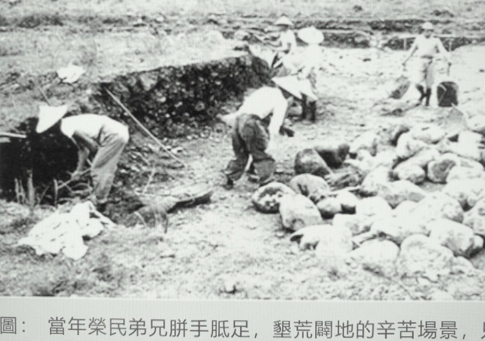 我的工作比起隊員們可就輕鬆得多了,他們沒有機械,只有圓鍬,畚箕和十字鎬,憑著雙手挖掘,搬拾鵝卵石做出田埂,將一片荒蕪的河床沖積地,畫分成一塊塊二十乘五十公尺的小區塊,再經挖填夷平,逐塊開墾成可耕地.