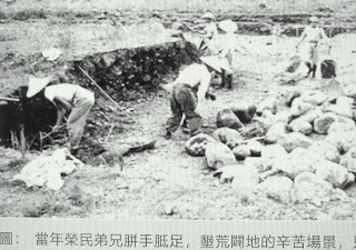 第一開發總隊的隊員們依測量隊(作者參與)所製藍圖,在志學河床新生地開墾實景(取自更生日報)