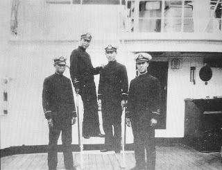 上了船,發覺艦上的官和兵涇渭分明,官艙與士兵艙全然隔開,官員倍受禮遇,不僅有個別的房間,寬大的官廳裡還有勤務服侍.一開始,我和槍砲官同室了一陣子,後被調去文書官周俊茂的房間,我睡上舗,周睡下舗.在船上服役,因為有航海加級,伙食好,我的少尉薪餉也高於一般的少尉.