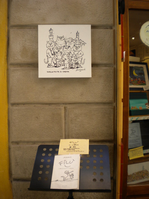 那「可愛好玩的邂逅」(lovely meeting)就搬上部落格與大家分享好了,這個可以公開不藏私;今天介紹我與義大利插畫家Mr. Alessandro Valenti在西恩那(Siena)可愛的邂逅,我穿過觀光客較少走的街弄巷道,走過一兩家美美的小店舖,然後來到一家怪怪、趣味趣味的店,當然我不會諱言,這個小邂逅價值我歐元20元(約NT$840)。