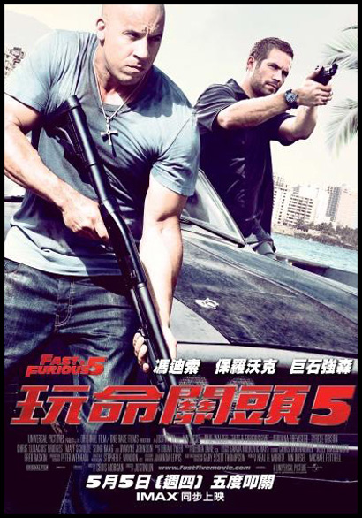 我沒聽過、沒看過「玩命關頭」1、2、3、4集,一直以為這是「玩命快遞」(The Transporter,就是舒淇有參與演出過的那部好萊塢飆車動作片)的續集,非常猶豫,但北部下著大雨,窮極無聊,就開車到附近的台茂購物中心去看這部「玩命關頭5」(Fast Five),因為我不想看神鬼奇航-幽靈海,總覺得之前看過這部系列電影的那些海盜扮相髒髒的,又不想看浪漫愛情片「野獸情人」,也不想知道「大象的眼淚」在演些什麼,更不用說「功夫熊貓」了。