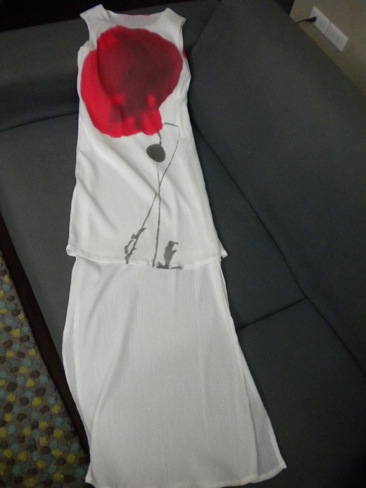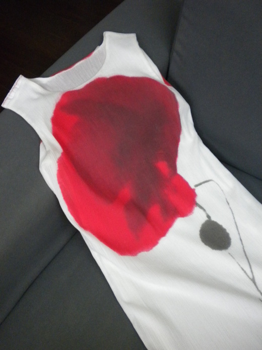 但是,我留下了一件實在應該已經穿不下的小禮服,即使穿的進去,看起來可能像是綁粽子,能看嗎?現在只能當藝術品、古董來欣賞,我真的真的捨不得給人家,也捨不得丟掉它!照片中這一件白色小禮服,我猜應該是我人生當中第一件正式的禮服,1999年在法國巴黎香榭大道附近買的小禮服,個人覺得充滿藝術的美感,又帶著東方潑墨設計的效果,在歐洲法國巴黎買到這樣一件禮服,感覺很獨特,小禮服肩膀處繡著”E-play exterior design”,可能是品牌名稱。
