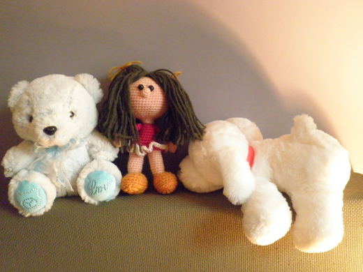 本來沒打算po這三隻的照片的(Photo no.1&2),那一天在網友最愛尤加利那裡說怕po這個太幼稚,會被人家笑,都幾歲的人的,還放這種可愛的小東西在床頭,但網友鼓勵我po啊!我可不可以坦白的說:每次我一進房間,這三隻這樣擺在一起,真的會讓我微笑。真的無論你我幾歲,心中都躲著一個小小孩吧!