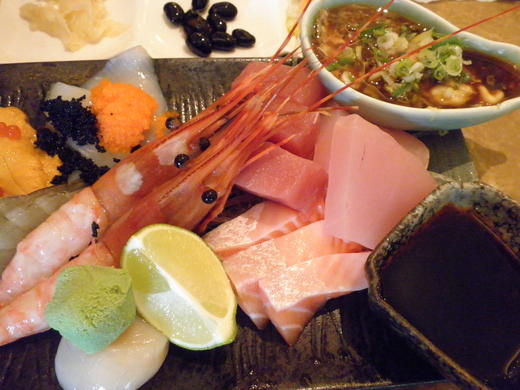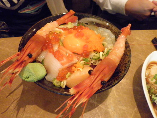 有這一群朋友真好,都可以當跟屁蟲,吃到「好野人」等級的料理,例如Bellavita的米其林餐廳(L'ATELIERde Joel Robuchon)、台北101第85層樓景觀餐廳「欣葉101食藝軒」,還有吃了n次的鼎泰豐。今天又當「好命跟屁蟲」,作東的C. 完全推薦這一家餐廳的「無敵」等級餐點,特別是「無敵蓋飯」,我有問海鮮內容物幾乎一樣,我選擇「無敵定食」(Jumbo set-meal),Jumbo 是我自己亂翻譯的,因為這個等級的蓋飯與定食份量與新鮮度真的很jumbo-誰能跟他比?