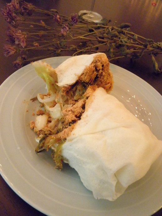 那糧食呢?偶爾我因心情或者身體感覺而沒有食慾的時候,有一樣小吃就成為我的癒療系食物,那就是「潤餅」,可以成為我的一餐,吃起來不油不膩、有高麗菜的清甜,它是安撫修護我身體的糧食(food for comforting and healing my body)。而今天早上收到的一本書,是一位知名作家出版的新書,作家在書上跟我說: