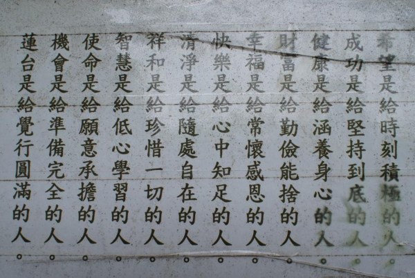 每次走虎頭山時,總會在半山腰的土地公廟牆上讀到如下的勸世文,因爬到這個點,都會喘一點,就會駐足休息一下,也因此每次都有機會再複習一次,身與心都獲得洗滌,也與你分享: