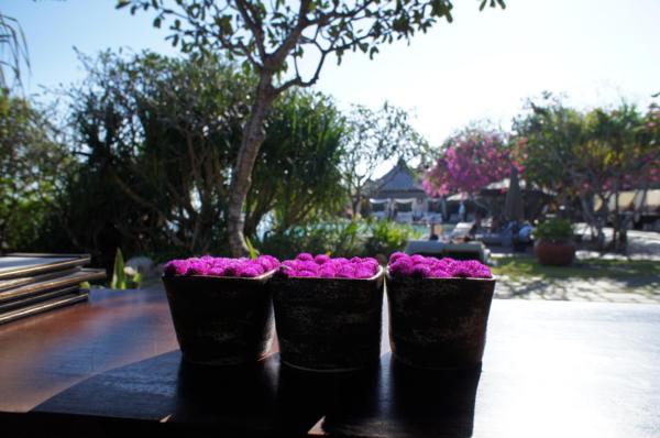 我一直以為圓仔花就像蟛蜞菊一樣,就是很平凡樸素,很一般的小花花。說來也是,上一次在桃園花市就看到小小盆的圓仔花一盆10元,我本來要買,因為圓仔花艷麗的紫色花朵,感覺具有鼓舞人心、提升心情指數的效果,但不知道怎麼了猶豫沒買?那時候我還沒去峇里島度假,而在峇里島寶格麗酒店(Bvlgari)的那一個下午茶饗宴裡,我很驚訝看到了:圓仔花也有春天(Every dog has its day.),只要有一位伯樂能識千里馬,加上一雙巧手。