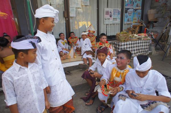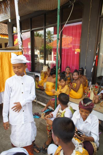 峇里島或說印尼是一個很重視拜拜的國家,當地華僑導遊朝陽說,幸好我們早一點點下山,不然小鎮上的大拜拜會把唯一聯外道路封閉,Wow!拜拜比什麼都重要的國家呢!管你有多少觀光客在有美名「度假天堂」的峇里島上竄,但也因此,我們有幸一窺印尼人大拜拜的異國傳統文化景象,lucky……。