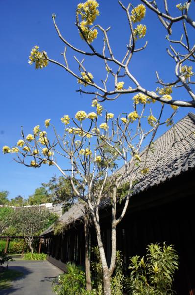 台灣的雞蛋花花朵通常是五瓣(five petals),各開各的花朵,這裡一朵、那裡一朵;我在峇里島(Bali)看到的雞蛋花,開花時花朵都很茂密的擠在一起,仔細看應該是10瓣(ten petals)的雞蛋花,開花同時,葉子都幾乎掉光光,把所有的光彩都留給雞蛋花花朵們,那一種品種的雞蛋花美呢?能開花的,對我而言,都很美。
