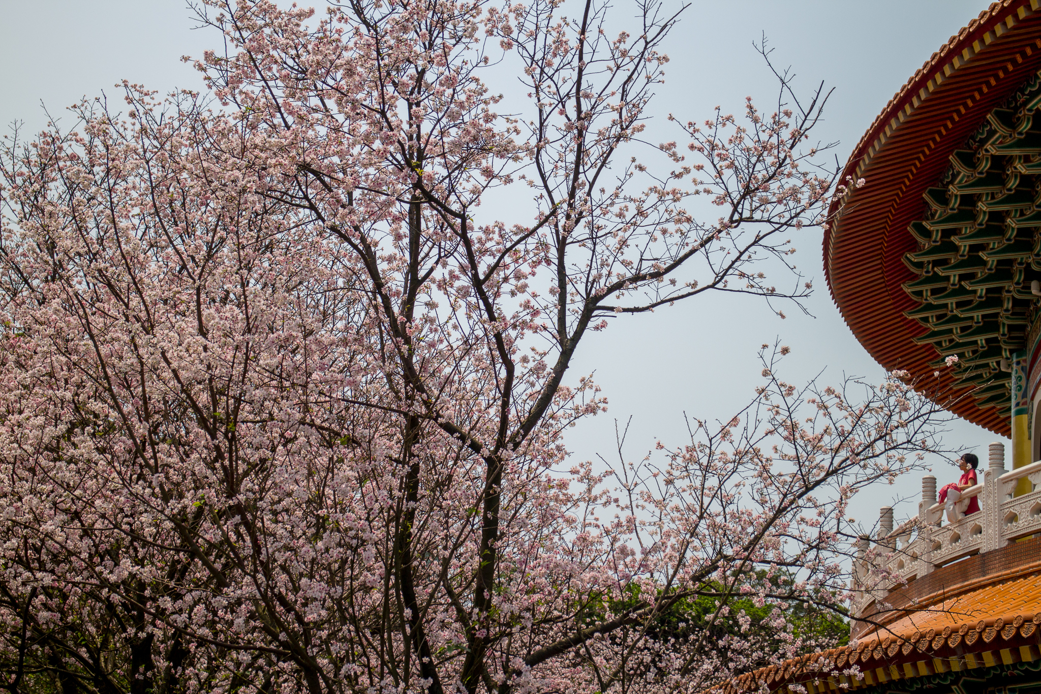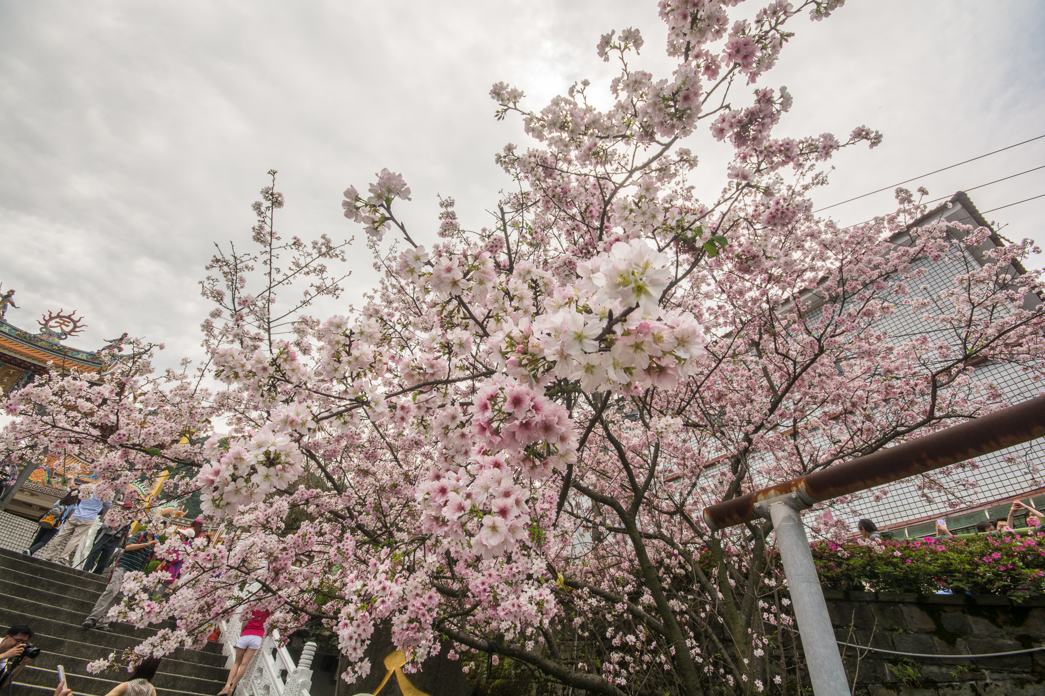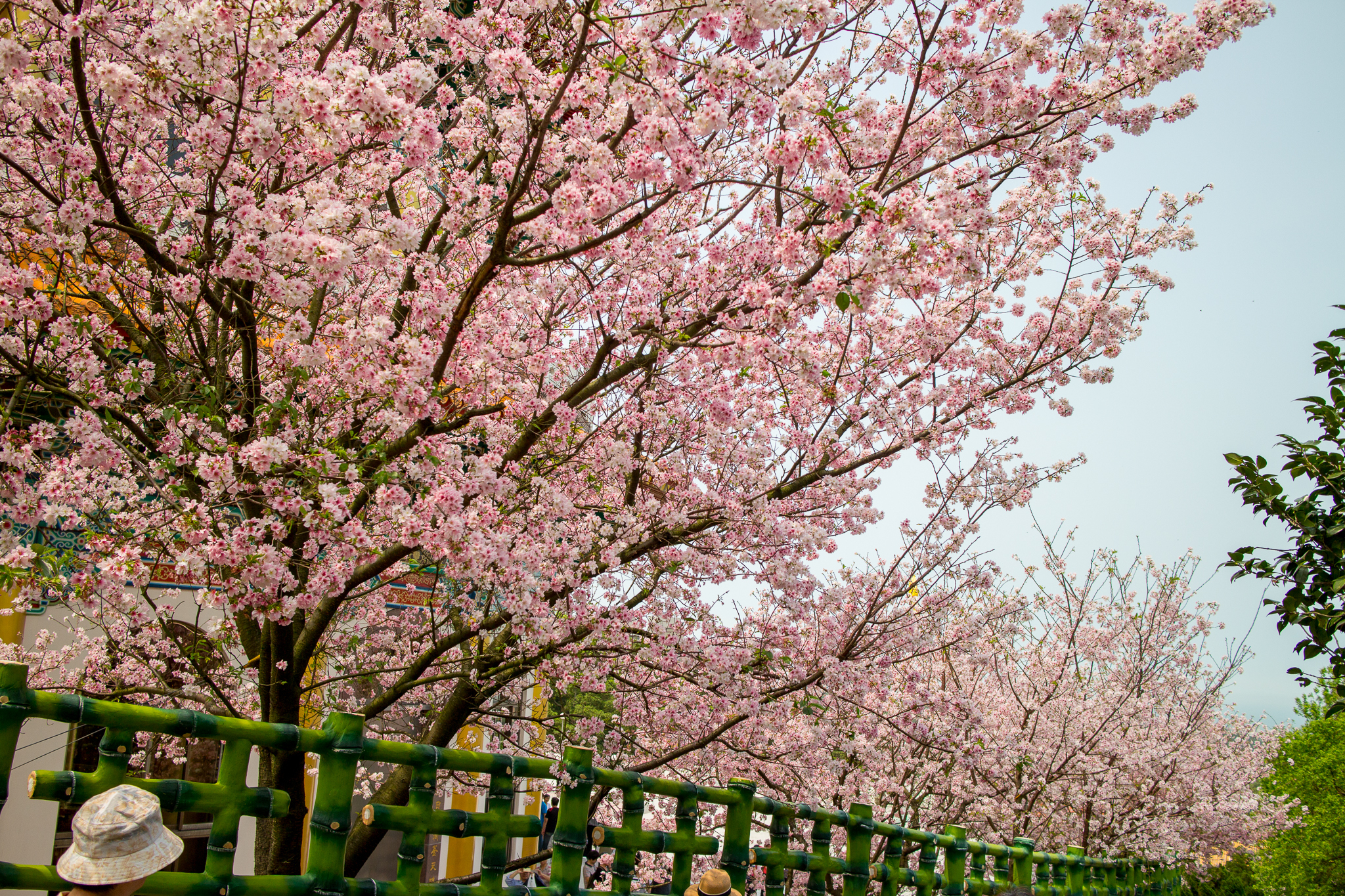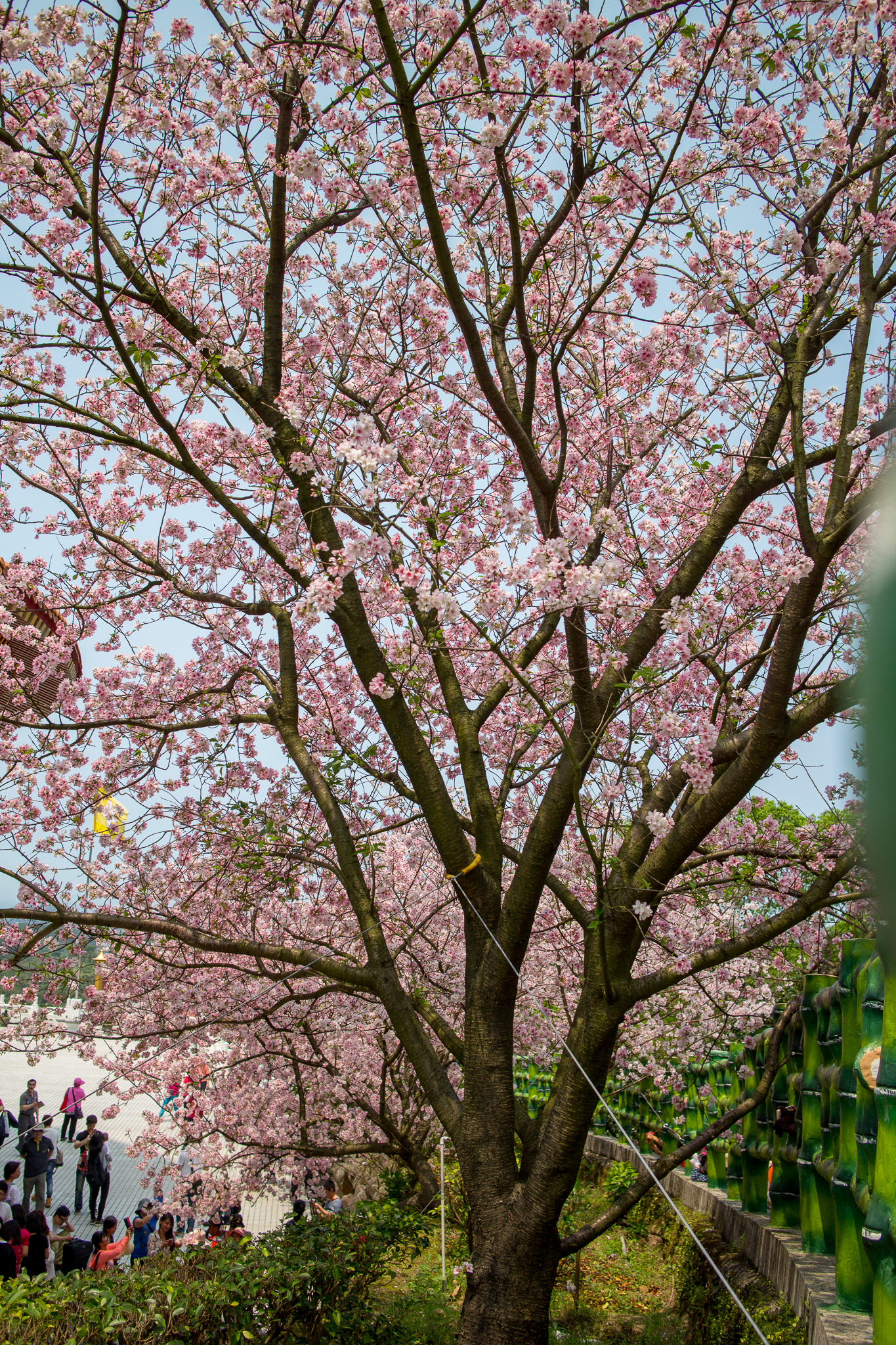 淡水天元宮的吉野櫻就不用多作介紹,往年盛開的時間大約是三月二十前後,今年因為天氣等因素,使得櫻花在四月初仍只有不到一成的開花率,截至四月五日,仍然稀疏。