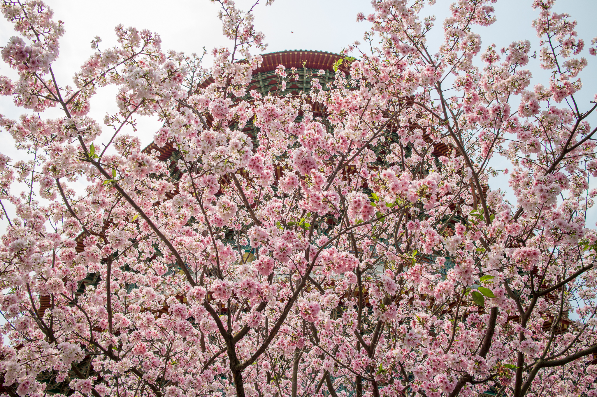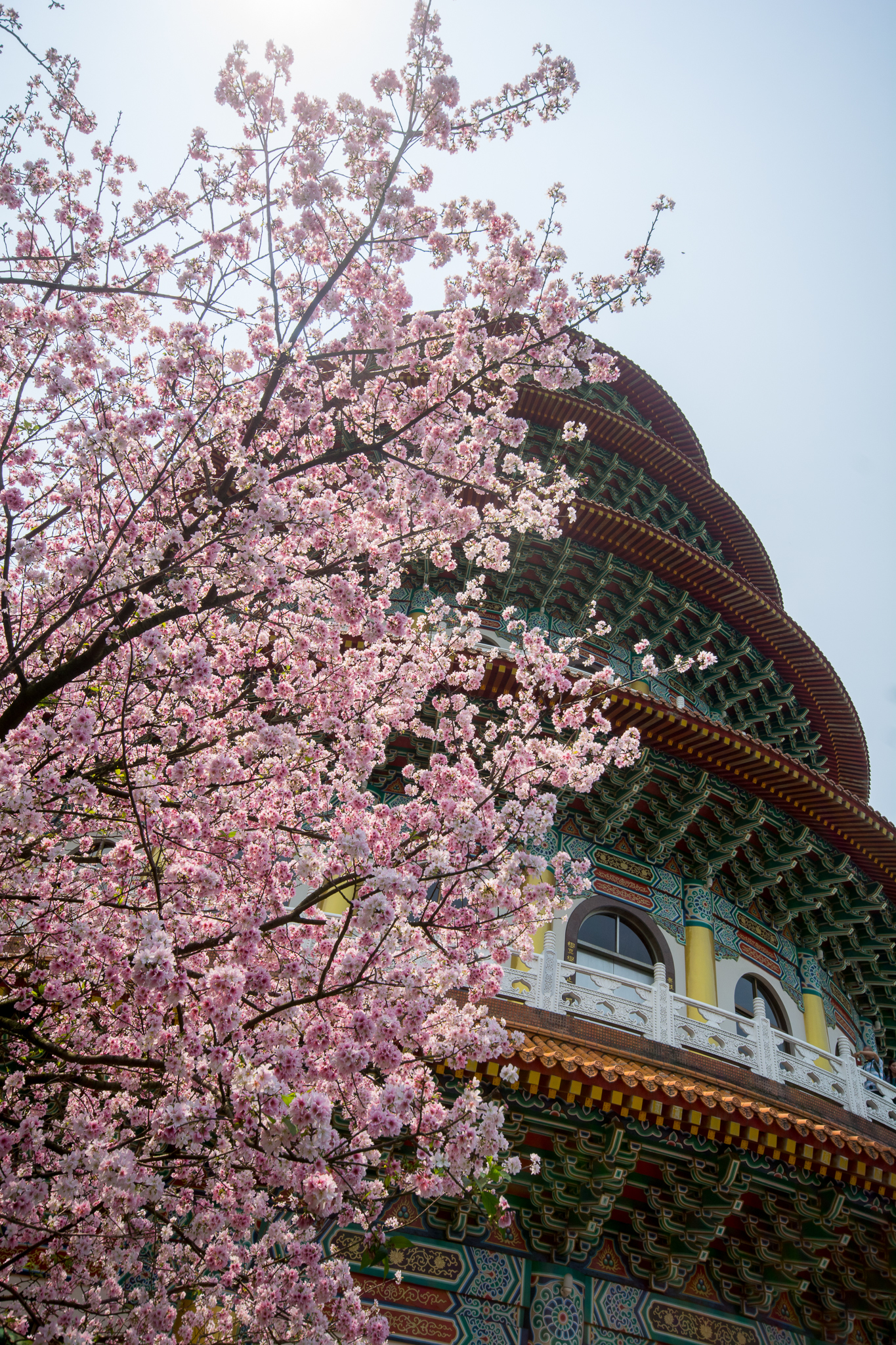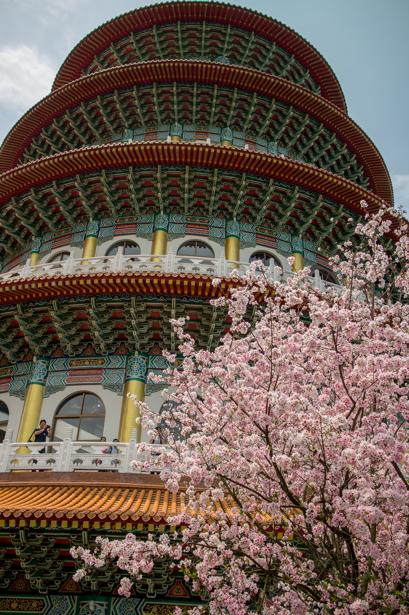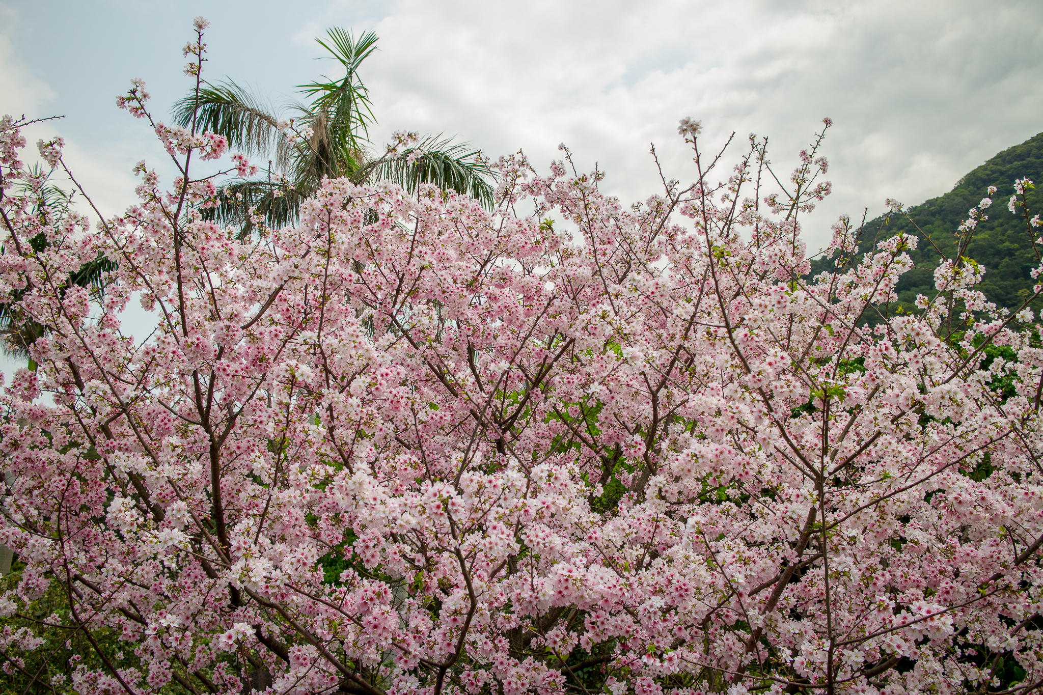 淡水天元宮的吉野櫻就不用多作介紹,往年盛開的時間大約是三月二十前後,今年因為天氣等因素,使得櫻花在四月初仍只有不到一成的開花率,截至四月五日,仍然稀疏。