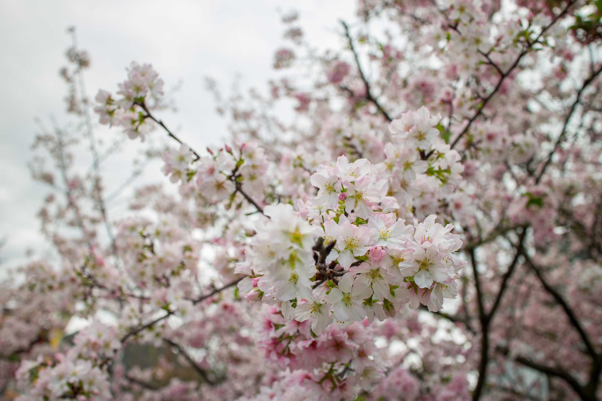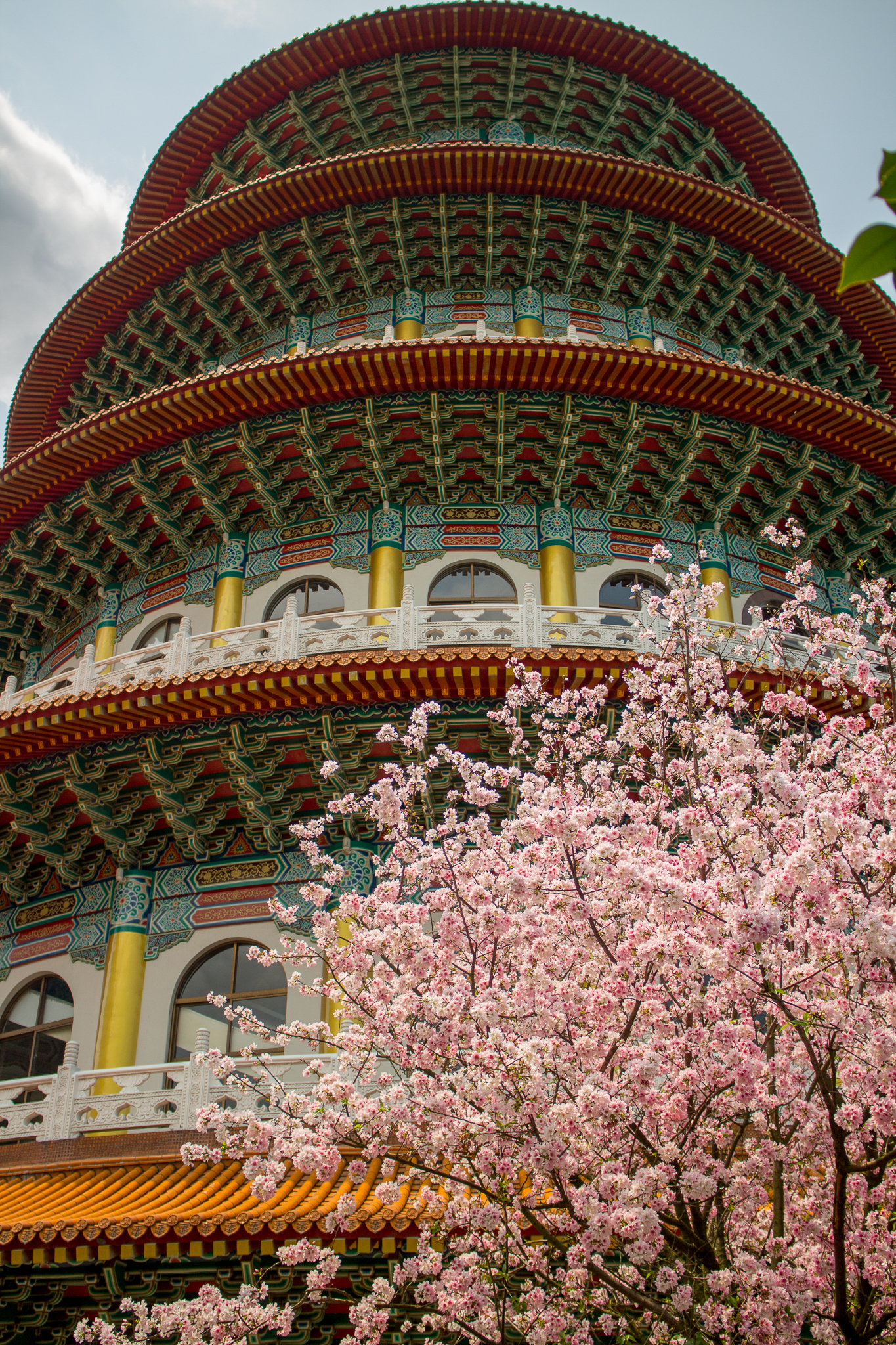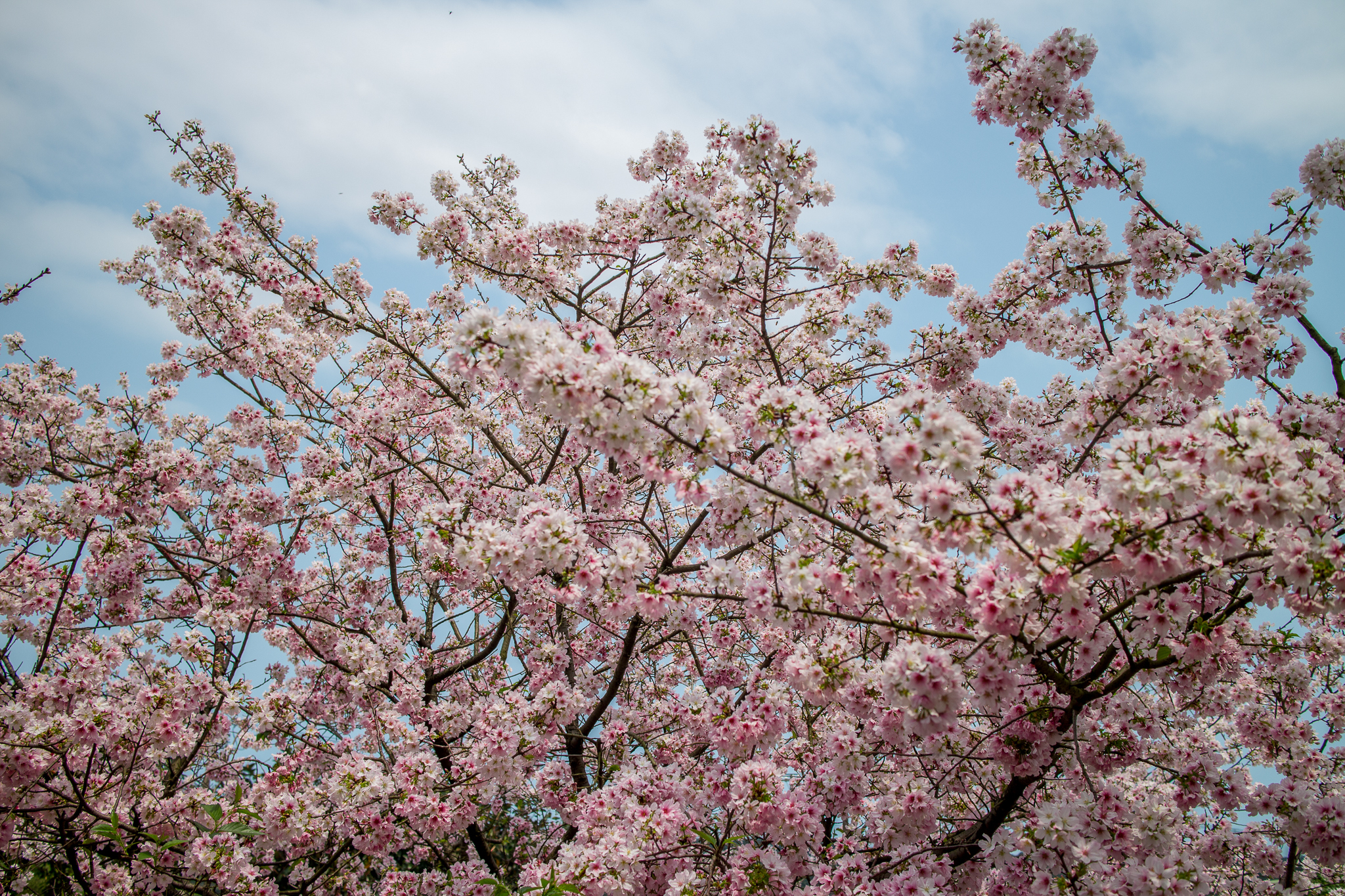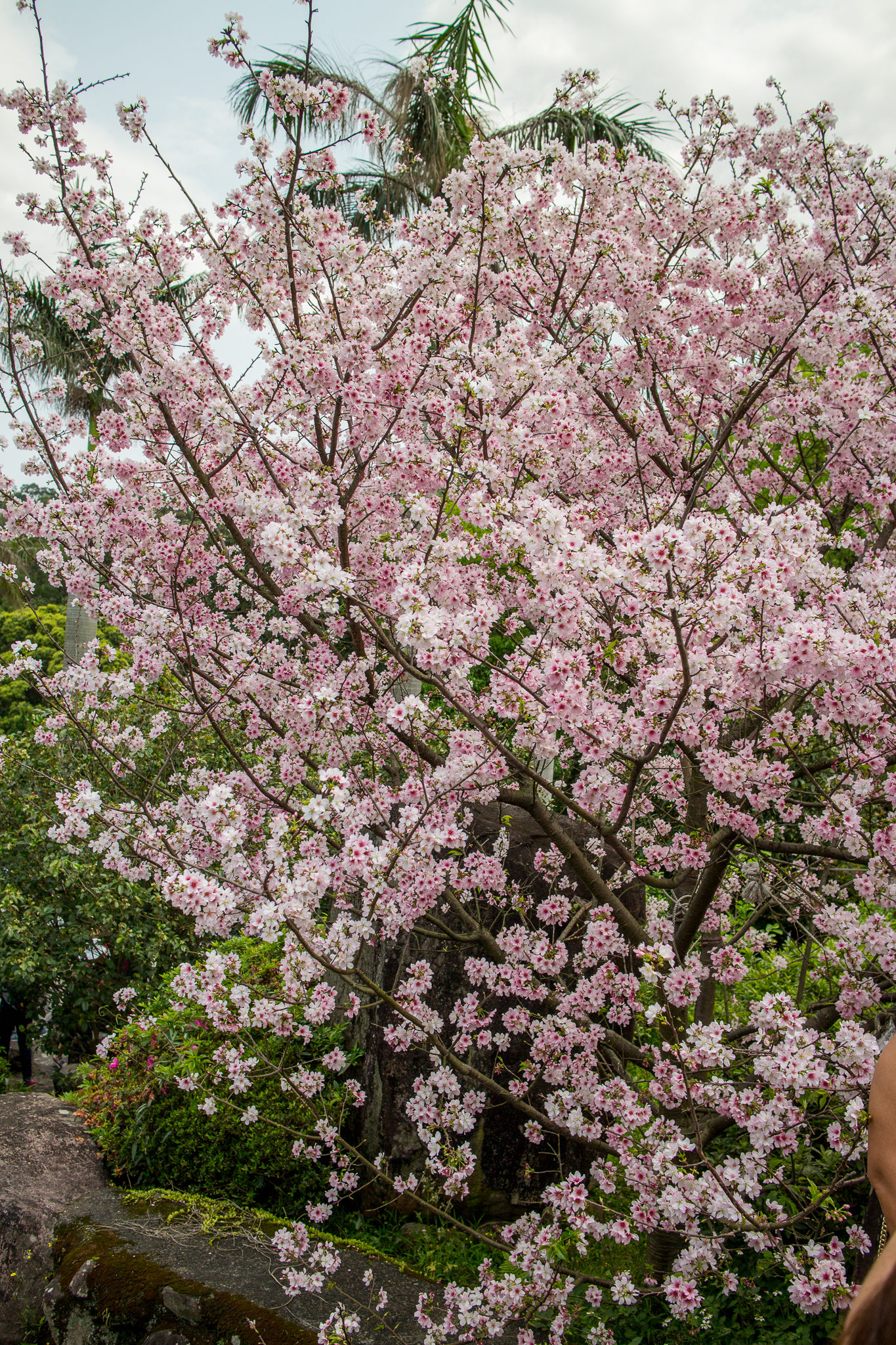 淡水天元宮的吉野櫻就不用多作介紹,往年盛開的時間大約是三月二十前後,今年因為天氣等因素,使得櫻花在四月初仍只有不到一成的開花率,截至四月五日,仍然稀疏。
