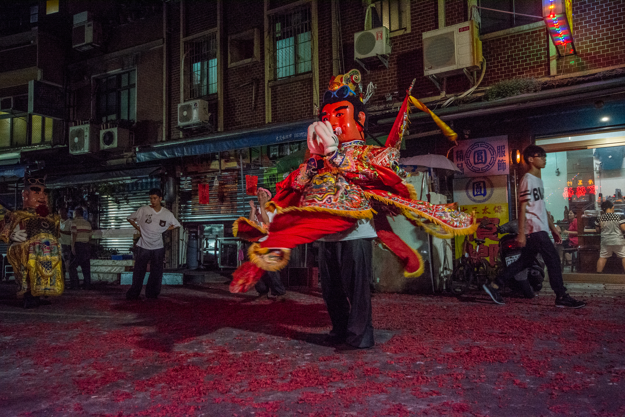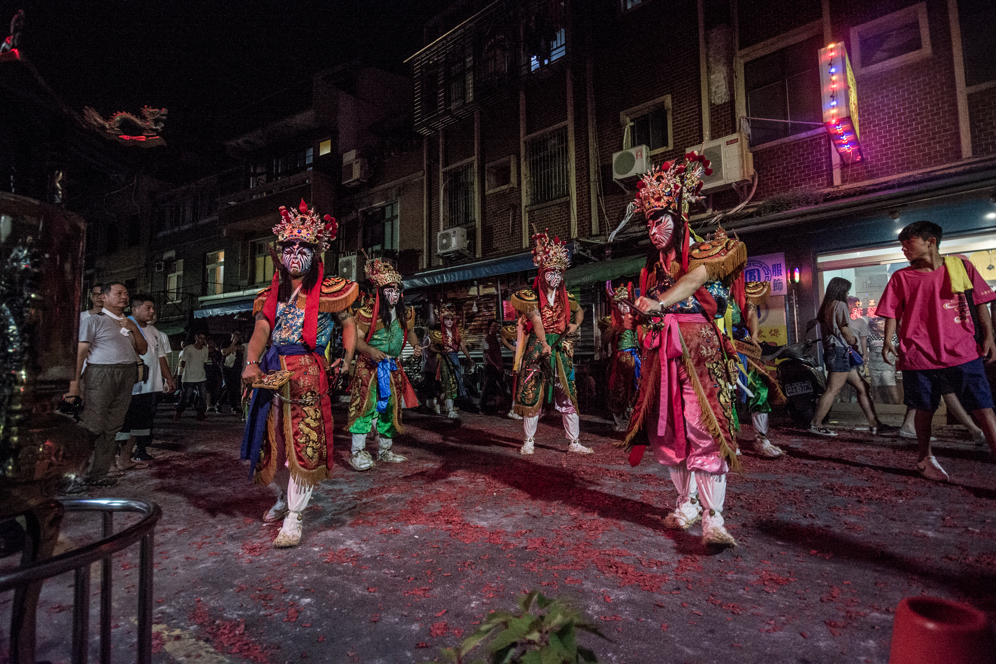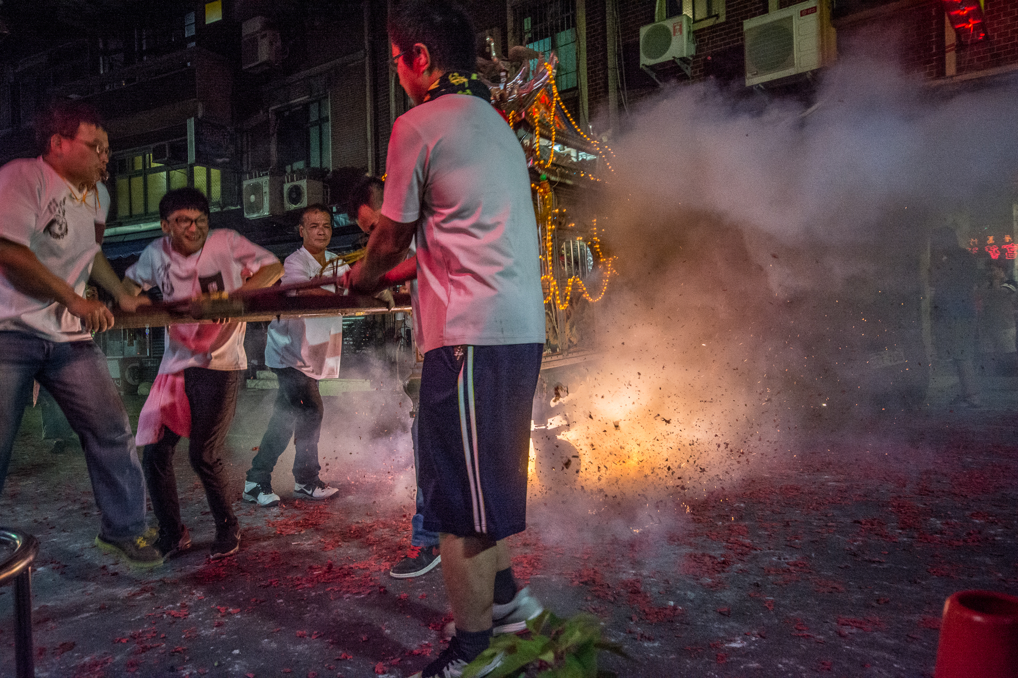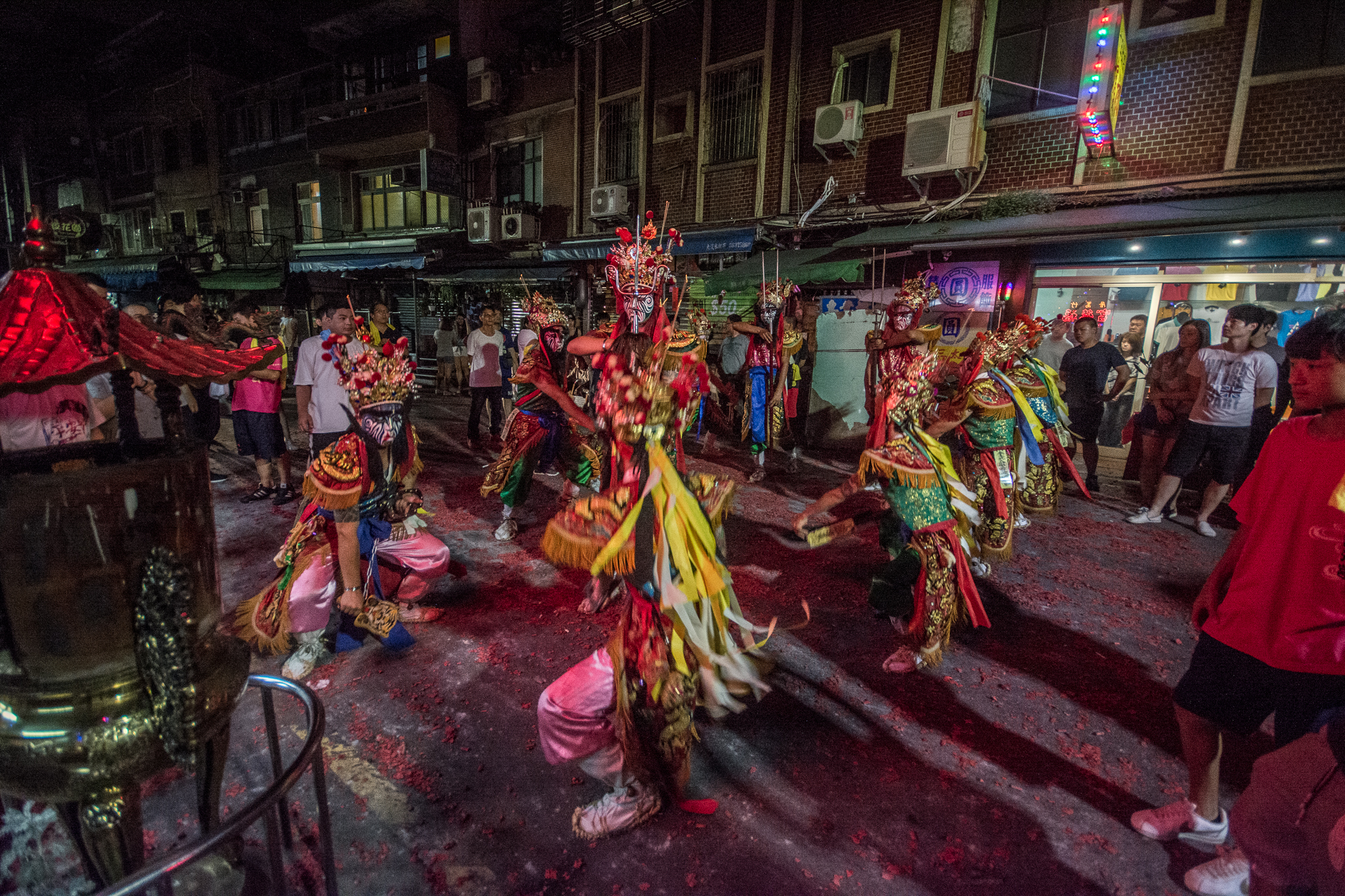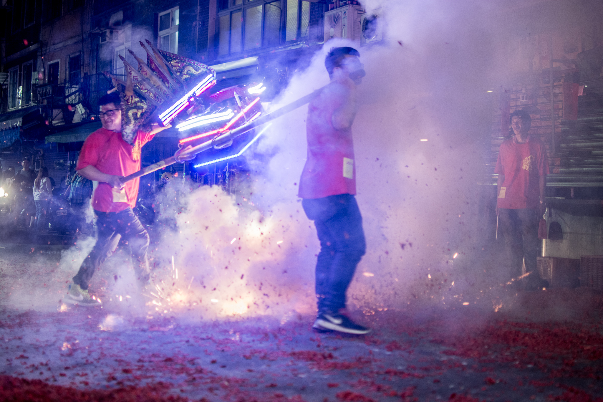夜訪的拍攝有很多的限制,包含光線微弱,必須提高感光度,自己習慣以慢速拍攝廟會,意圖呈現不一樣的攝影效果。