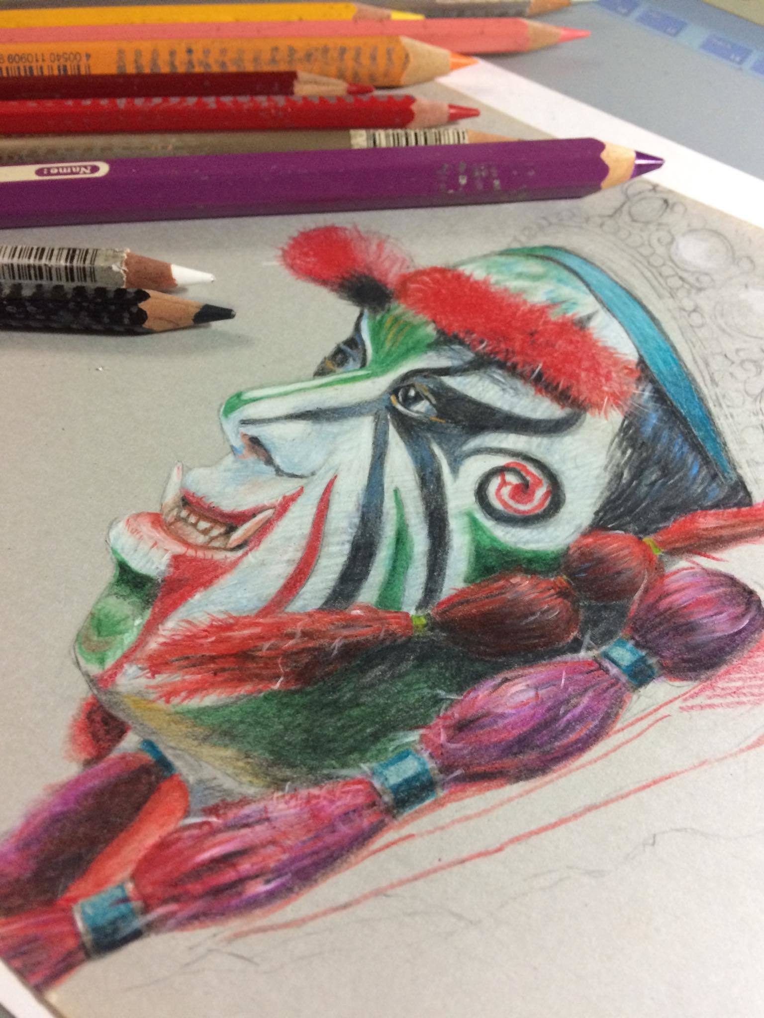 畢竟在於整個廟會陣頭中,較為多彩豐富且多樣的,大概是官將首為首選了,很適合色鉛筆的發揮。