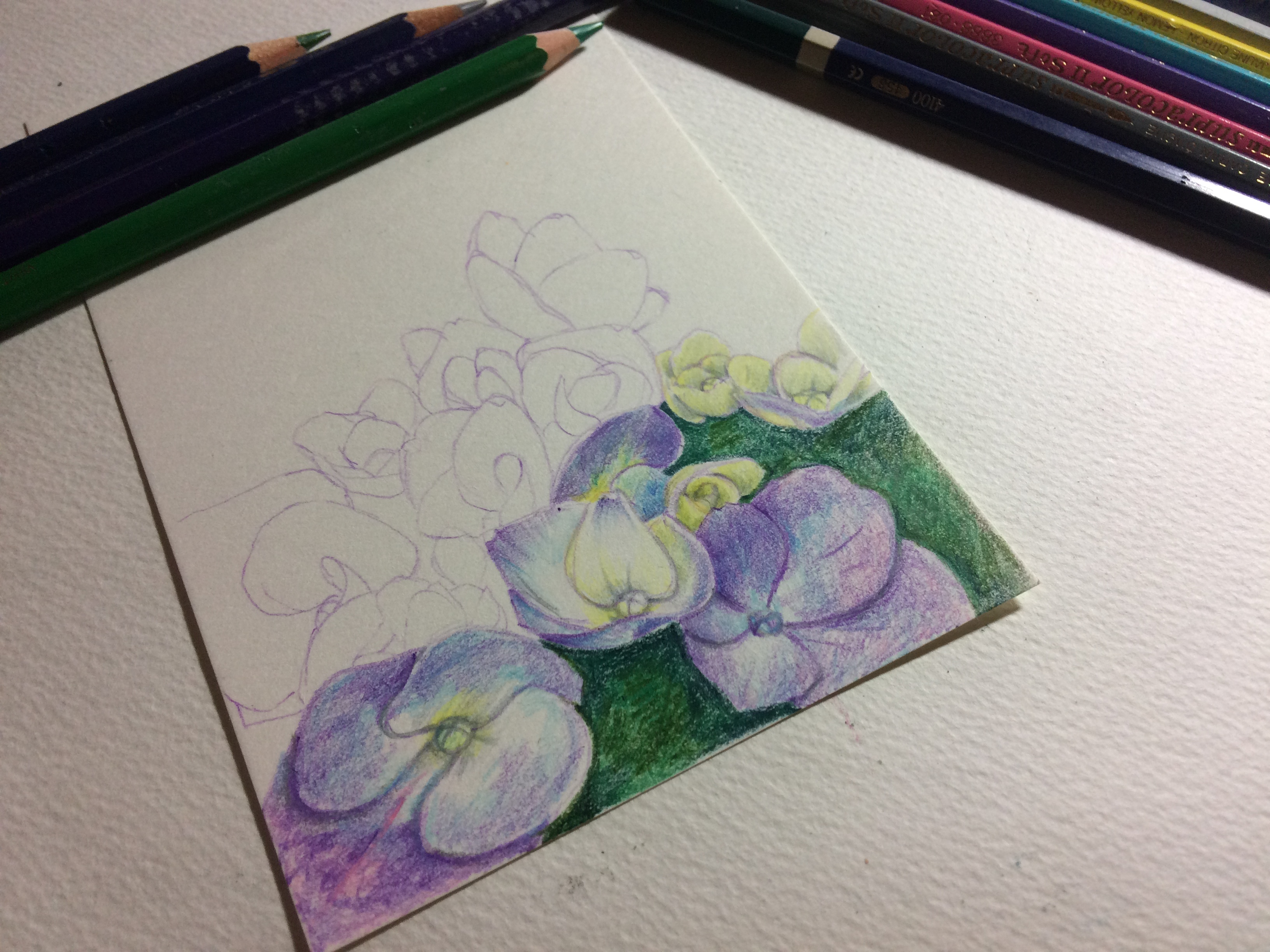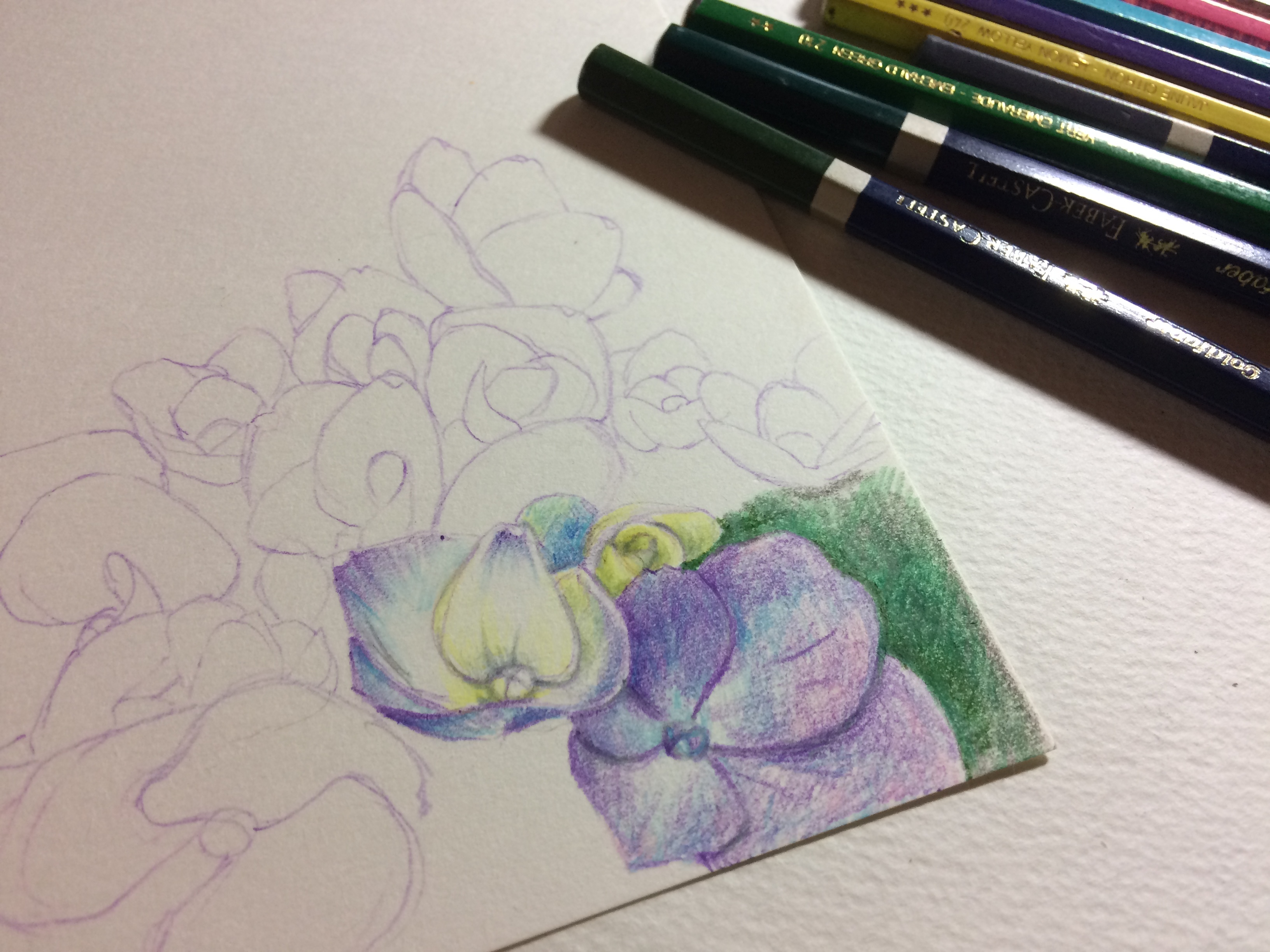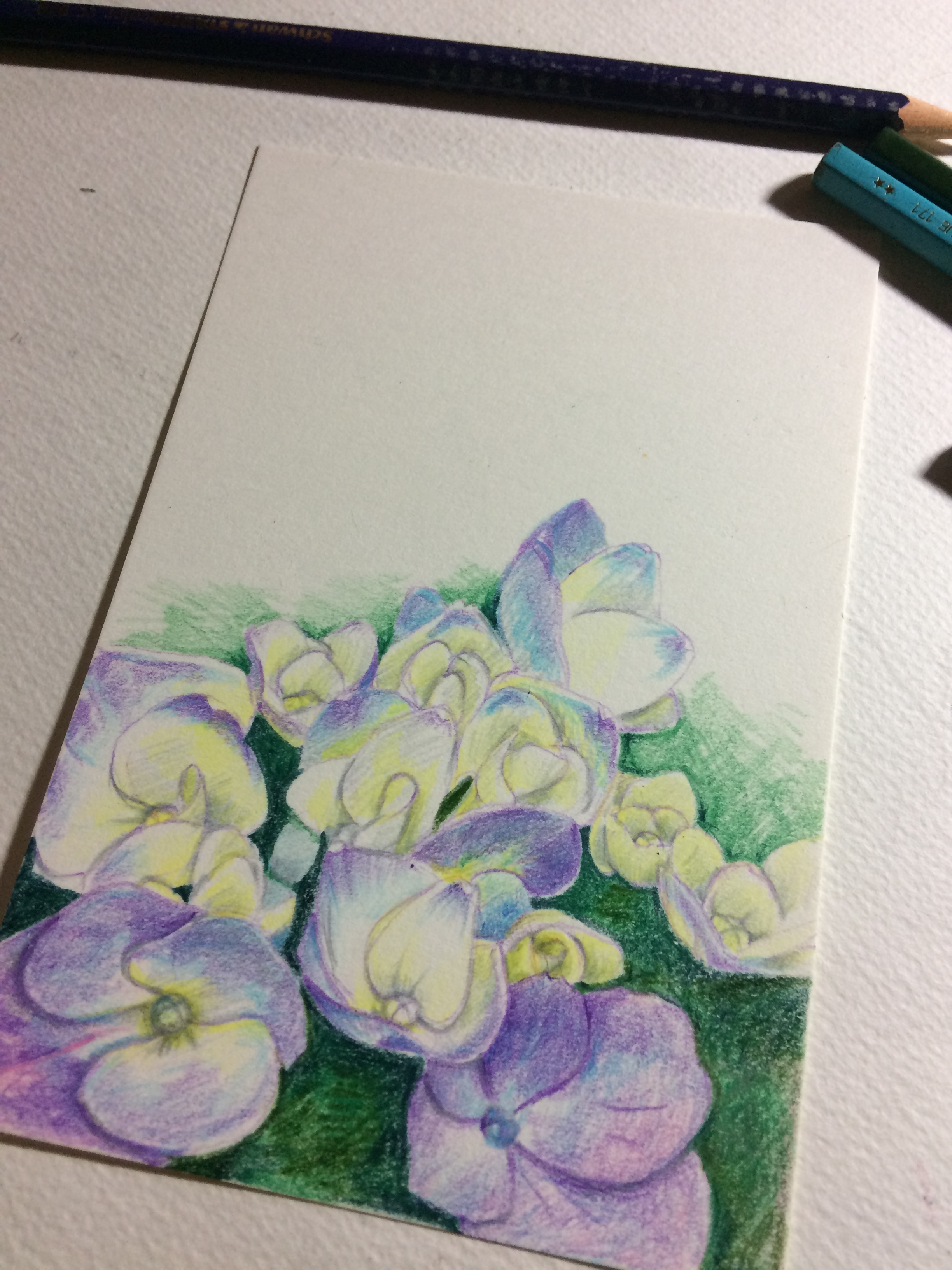 不過這花兒看似規律,但其生長極度不規律,色彩也有點特別,以色鉛筆來說,有點小難度。