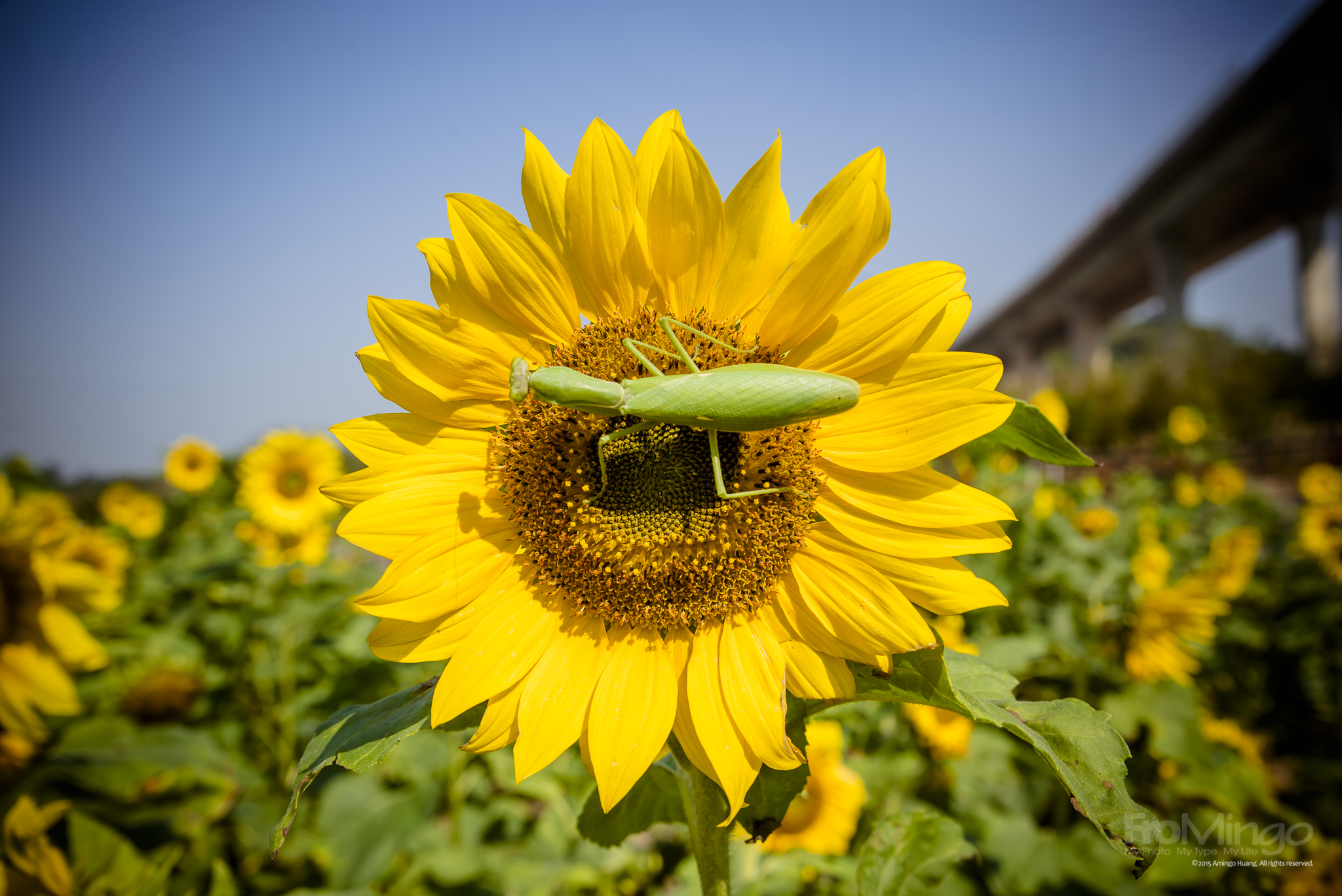 原本預期今年狀態不佳的花況,全部盛開了耶~~,雖然,比起過去的高度稍微低了點,密度也不是太好,但還是可以拍下很茂盛的樣子,畢竟,這片向日葵真的很大片啊~~
