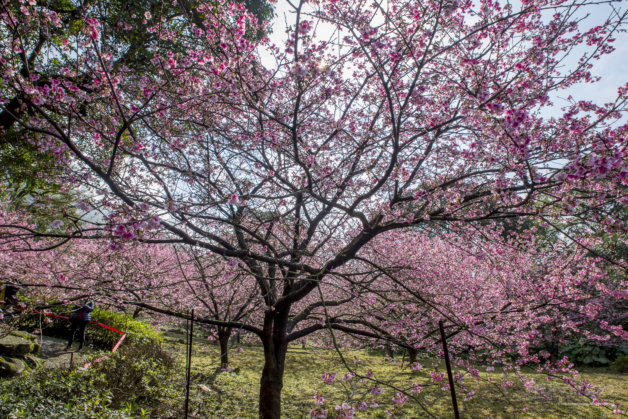 櫻花悄悄地開了,在這一月下旬的季節,這季節最美麗的,莫過於陽明山菁山路與淡水天元宮兩處的寒櫻(三色櫻)了。