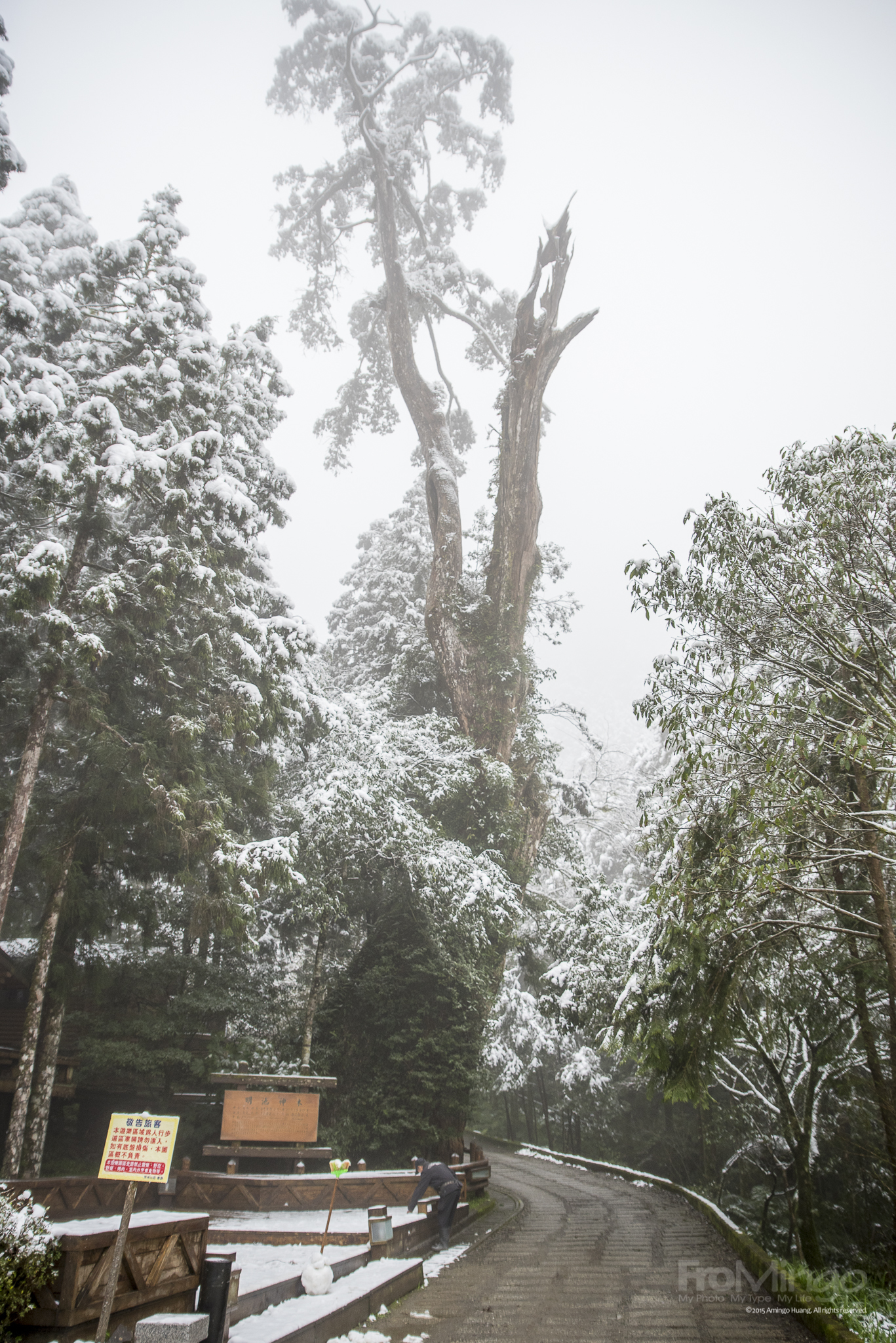 或許許多地方都有下雪,但大多數都有雪鍊管制,明池是這次比較不受到道路影響的下雪區域,所以沒有管制,也就能與老同事一起踏雪尋蹤。
