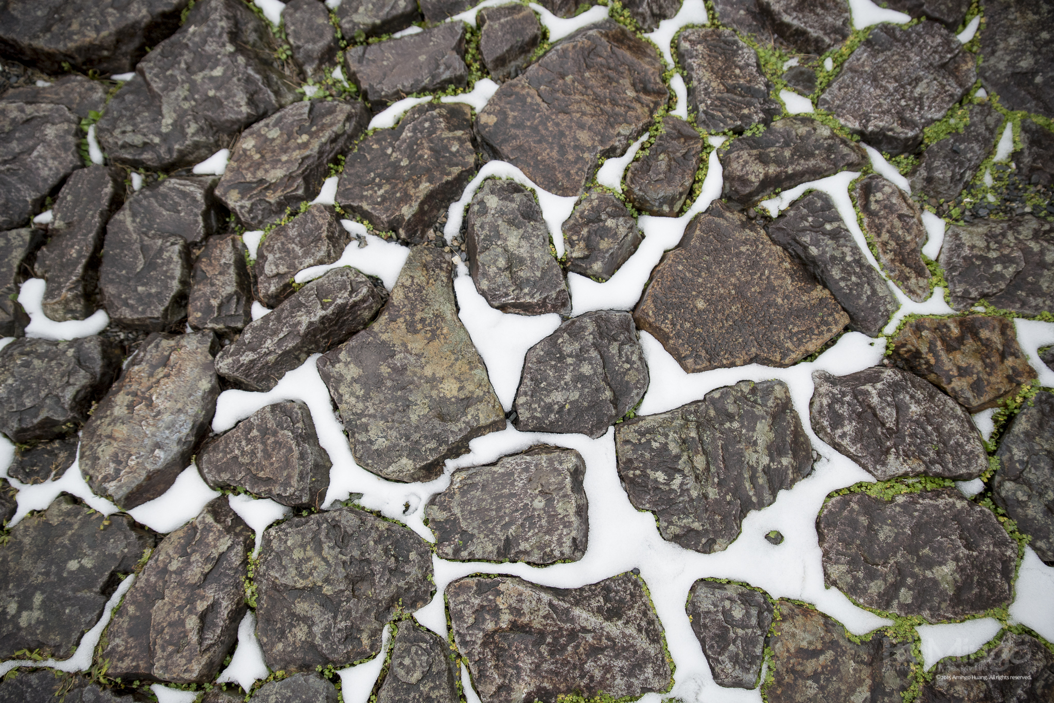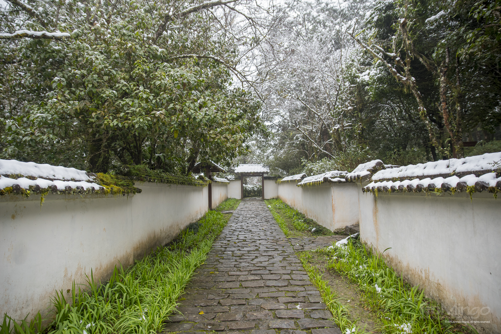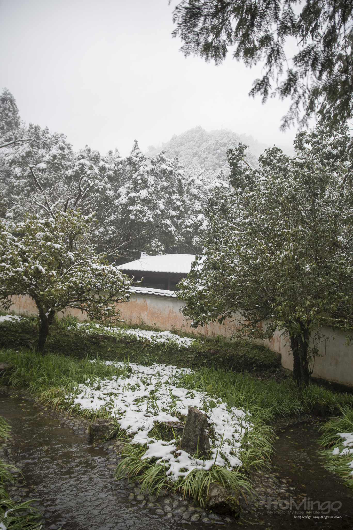 除了繞池一圈,入口的左側也有庭園造景,古意的屋簷搭上白雪,也是有那麼詩情畫意。