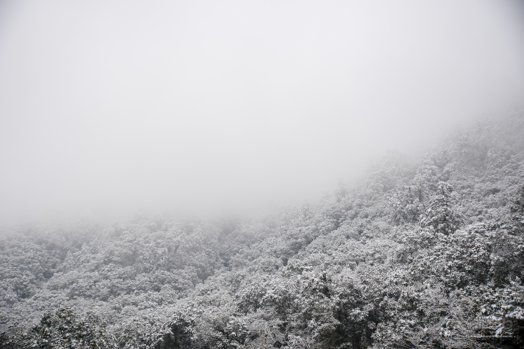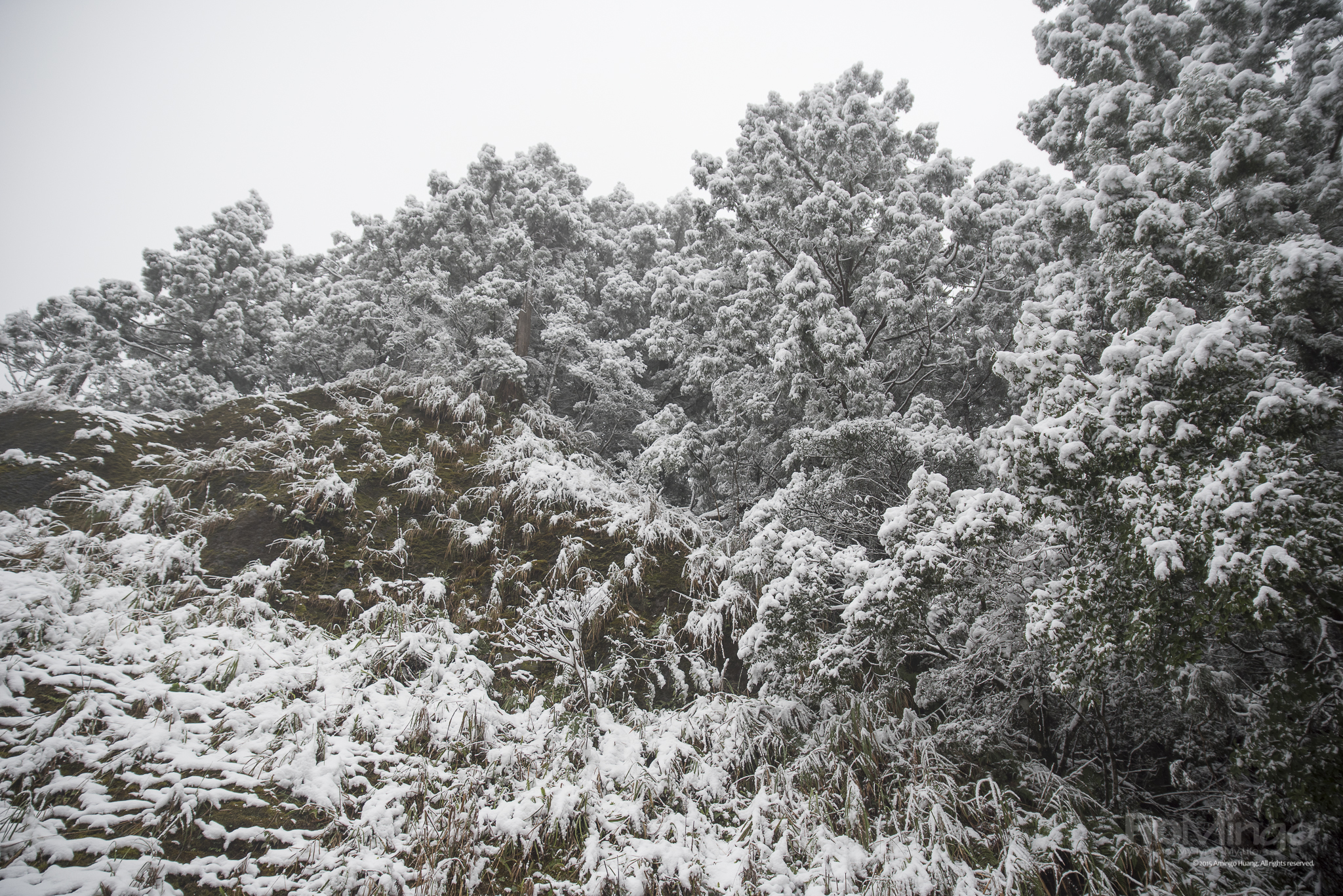 大約從單車人士最愛自拍的777(台7線77公里處)後沒多久,就開始有了壯闊的雪景,沿路的杉木林坡地,滿滿的白色夢幻衝擊。不過台七線較為狹小,建議若要停下拍攝,須找到避彎處空地才可暫停。