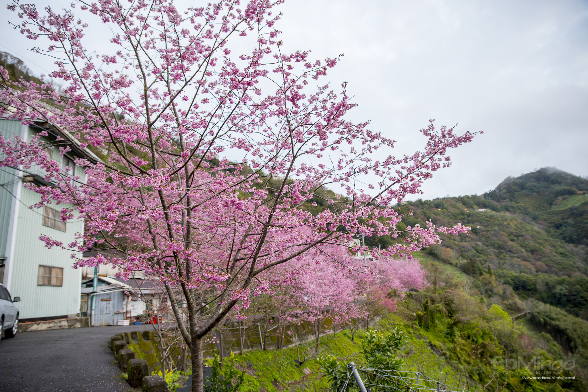 今年在民宿停車場旁的櫻花開得很好,形成了一個櫻花隧道,停放的車子,也都蓋上了數十片的櫻花瓣,真的很療癒感。