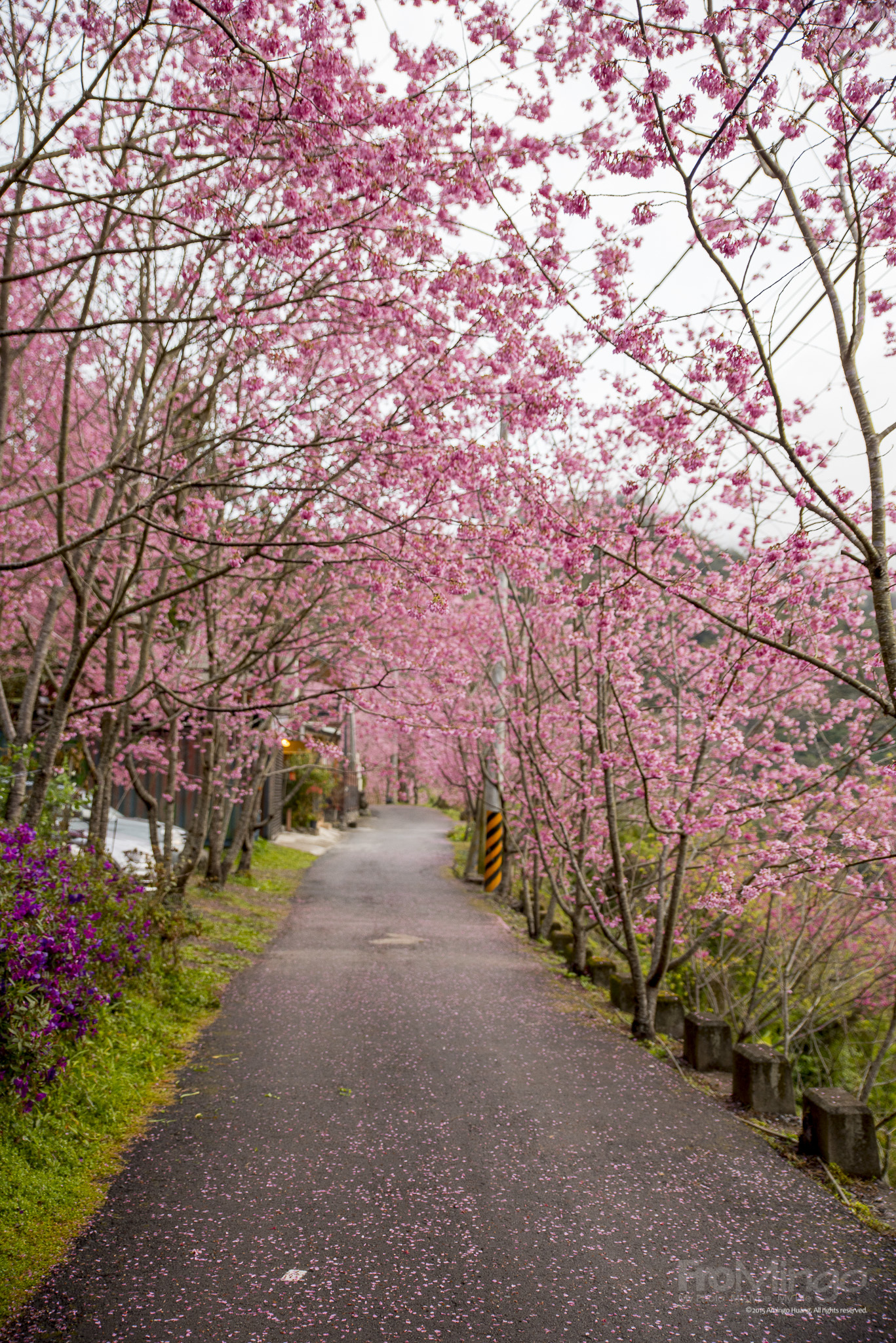 通常過了民宿後,那個櫻花隧道更顯得誘人,只可惜,可能去年部分櫻花染病被截枝,所以中間多了許多的天空,露出了那無法隱藏的電線。