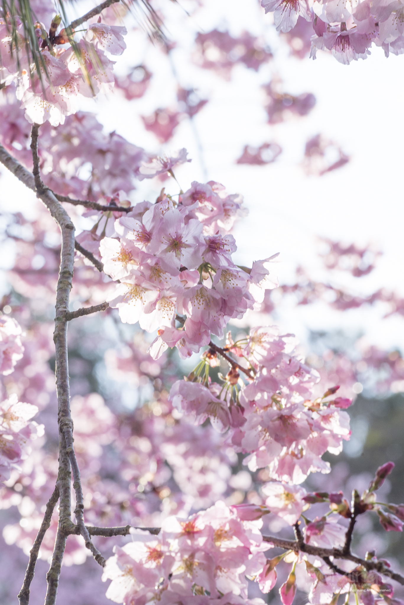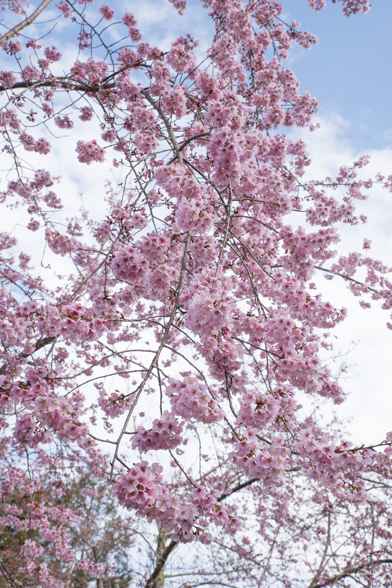 最先開跑的,是在停車場兩旁的富士櫻,接續的,則是千島櫻、雨晴枝垂與其他重瓣稀有的品種,但當富士櫻盛開千島櫻初開,就會是最壯觀的花況。