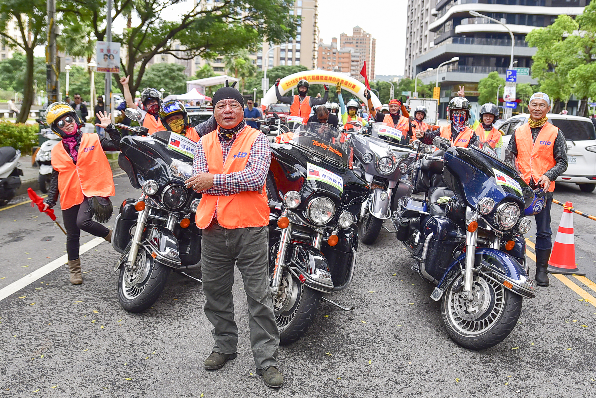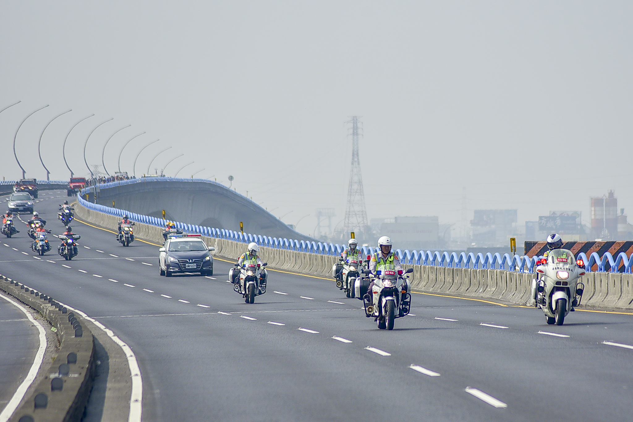 除了警力之外,重機車隊更奧援了十數台的重機車手同行,在警力不足或轉彎危險路段上,實施車輛與賽事的警告和引導,才能讓選手得以順暢的通行。