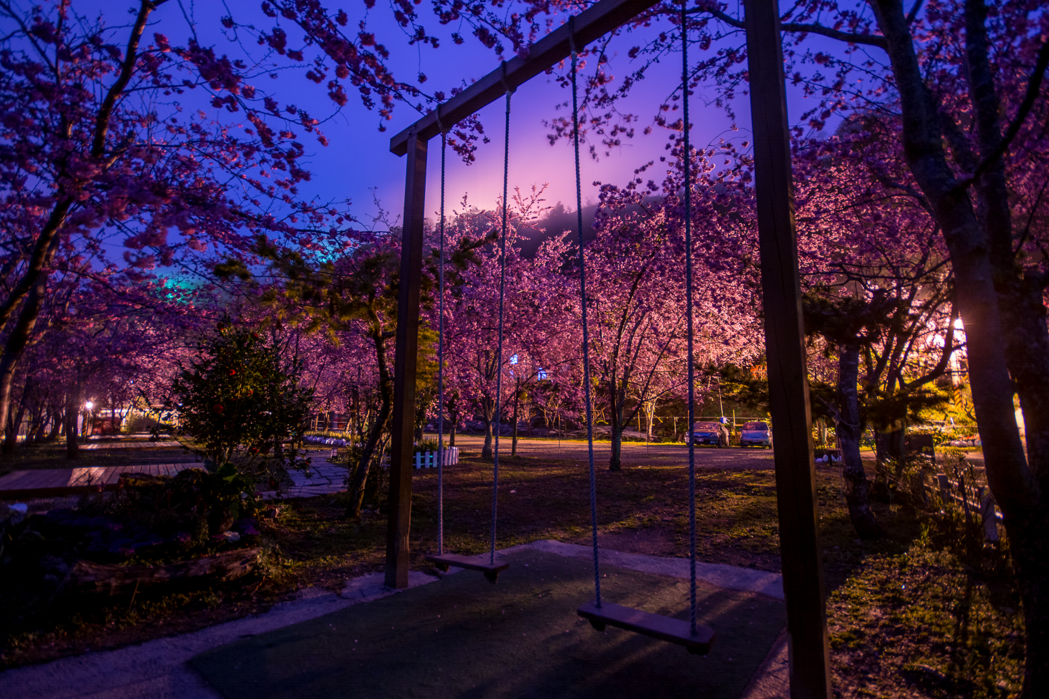 最特殊的,莫過於那許久未拍的夜櫻,正好彌補了白天沒有藍天下的對比。