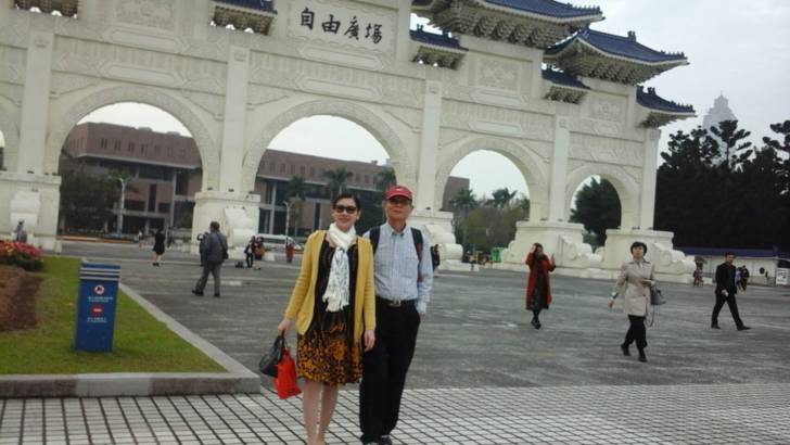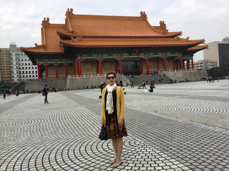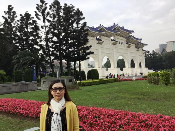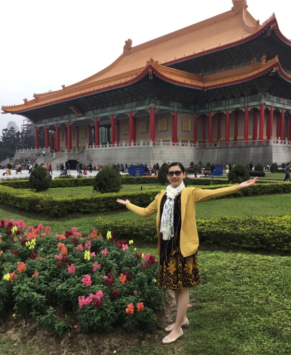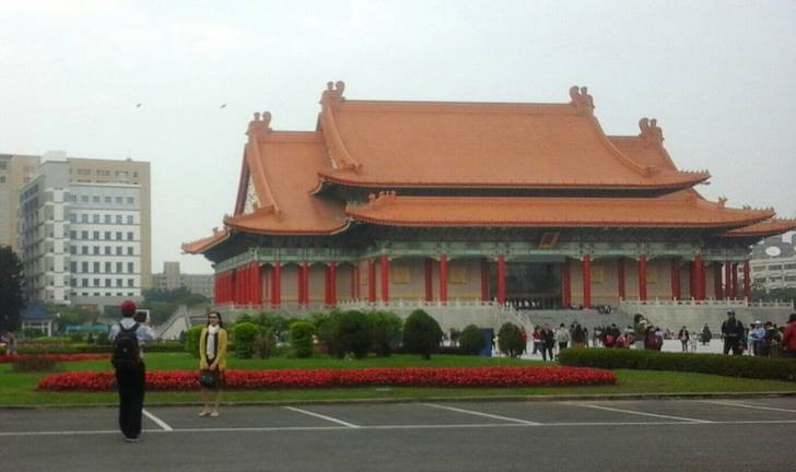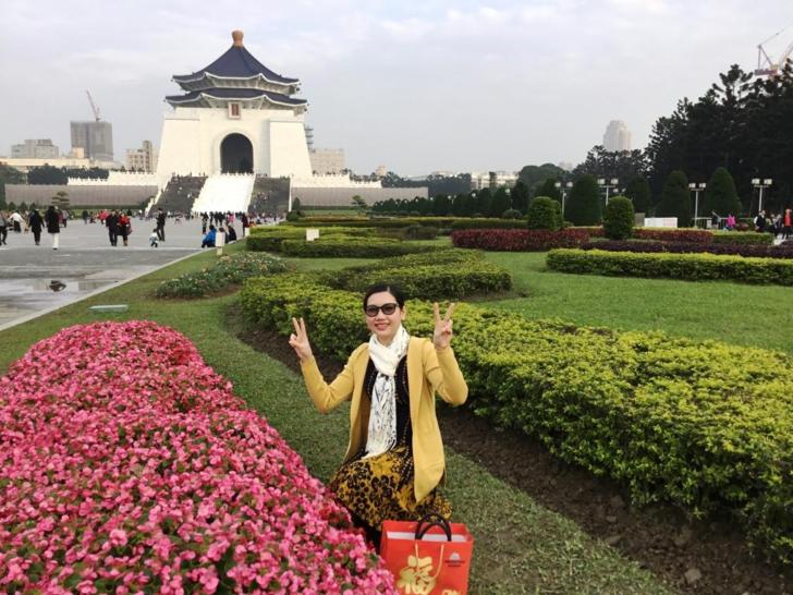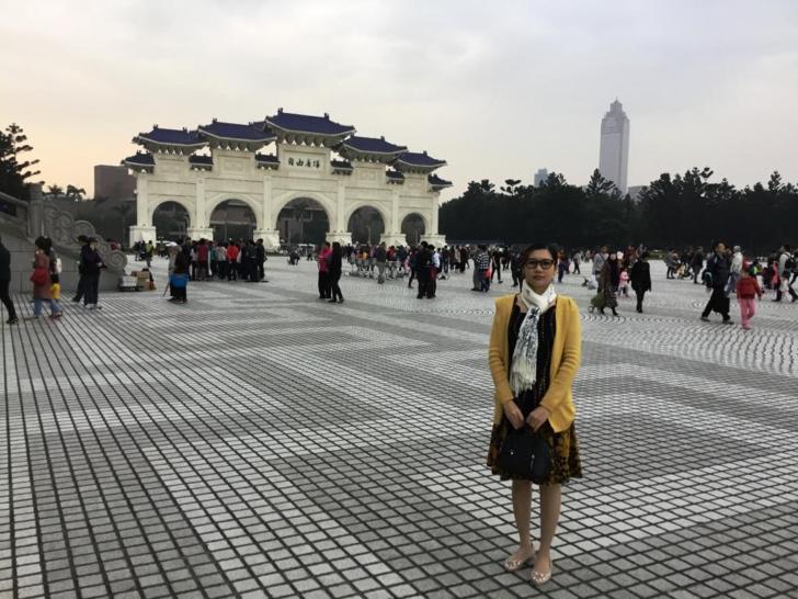 我們提著拿到的兩客思慕昔,搭車去中正紀念堂。到了目的地,阿秋看到有金碧輝煌的建築,有廣場,有小湖,有花卉,有草地,有櫻花,又是忙著要我在這裡替她照相,那兒為她攝影。我說,先找個安靜,比較少遊客的地方吃思慕昔吧,不然我提在手上的兩盒思慕昔就要融化了。