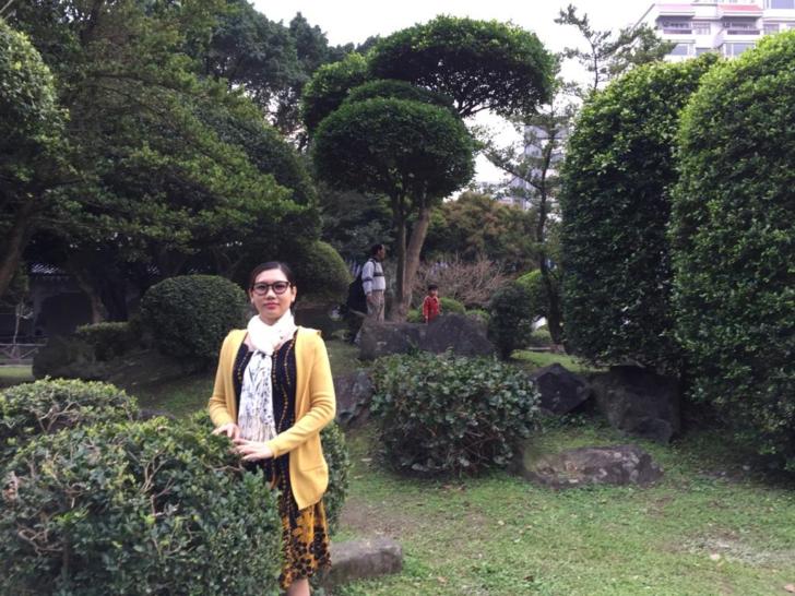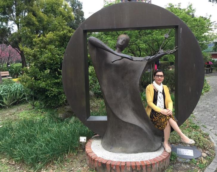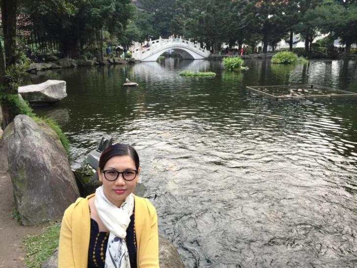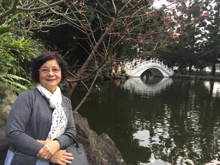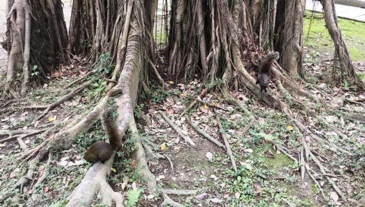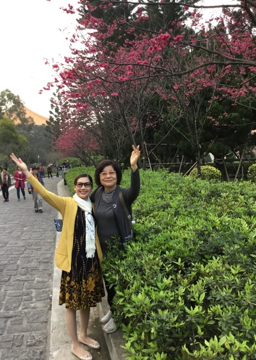 等嫂嫂和阿秋都跟松鼠玩得盡興後,才又想到要去池畔和花樹下走動和拍照。