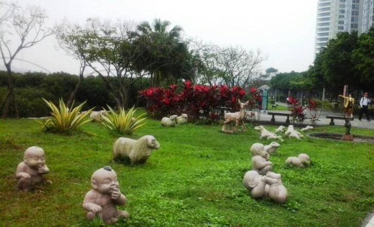 河濱公園沿著淡水河的岸邊,是自行車道。離開河岸,在自行車道和綠地外圍是一棟一棟的高樓大廈。嫂嫂帶阿秋和我走到木板步道靠著河邊沙灘的觀賞台,指著那片長在河灘水地的綠色植物說:「來看看這有名的,有胎生苗的水筆仔(Kandelia)。」