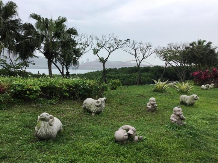 祝禱完後,和林先生夫妻再稍微寒暄一下,我們便告辭離開。我們拾級而上,從來時路往回走。快到階梯盡頭的路面時,我們都忍不住駐足回望,精舍庭園的松柏蒼翠,有些櫻花和杜鵑花在枝頭,退潮的淡水河依然迷朦,沒有漲潮的跡象。這是個安靜與世無爭的所在。