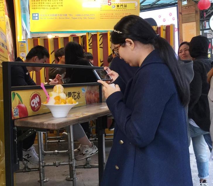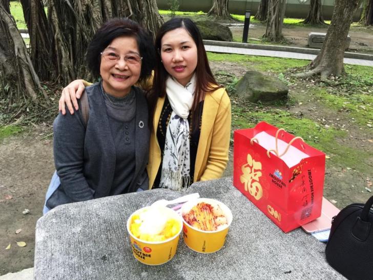 沒想到走出餐館,我們的胃納依然是沒有空間了。走到思慕昔的店門前,看到的還是擠滿的客人,還是需要去拿號碼牌,然後慢慢地等。嫂嫂說,現在我們的胃都沒有空間吃冰了,而且一客的份量那麼多,肯定是吃不完的,我看我們只需買兩客帶走,等我們到中正紀念堂再吃,如何?