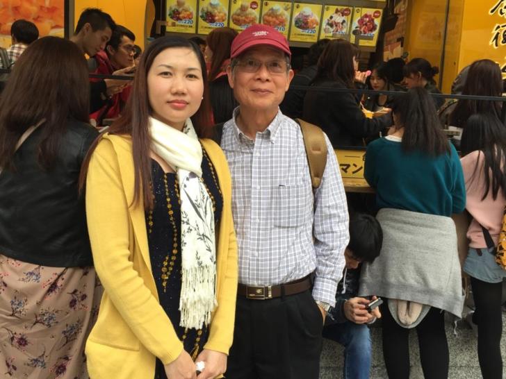 嫂嫂說馬路對面那家越南餐館,生意也非常的好。果然,都已經三點鐘了,餐館外也是一條長龍。因為我手上的號碼牌還得等一陣子,所以隨意照了幾張街景,也在越南餐館前替阿秋照了張相。