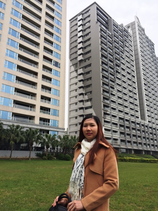 離開河岸,在自行車道和綠地外圍是一棟一棟的高樓大廈。