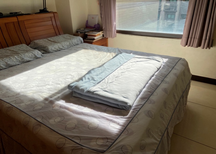 早餐後,阿秋到忠貞國小去上中文課,我為自己泡了杯咖啡,打開筆電,坐在客廳沙發上閱讀和上網。臨近中午時,我走進臥室,看見白燦燦的陽光透過窗戶,照射在床鋪上。我喜歡那明亮、開朗、溫暖、柔和的感覺。我望著床鋪上的陽光,發了一陣子的呆,因為我覺得那畫面是美好的,心中是充滿陽光,沒有罣礙的。