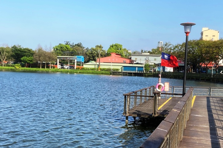 在去年的十月下旬,颱風過後,延伸至湖中的木板步道的角落,那杆飄揚的國旗,被強風吹斷旗杆,國旗則掉落在水中載浮載沉。如今,我看到一柱新的旗杆佇立在那兒,一面新的國旗在風中飄揚著。