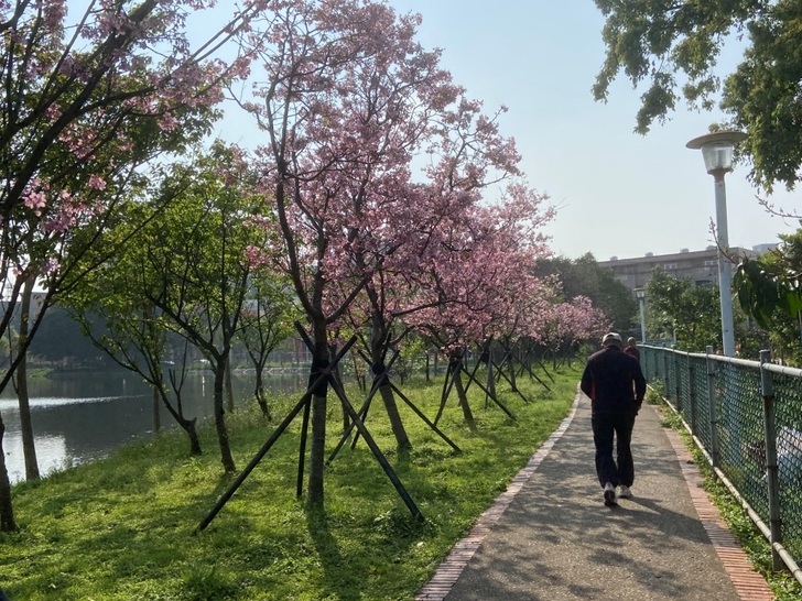 走到士校大池生態公園裡,我發現有幾個跟我有類似想法的人到了公園,走路運動。還有幾位行動不便的老人家和老太太,坐在輪椅上,由家人或是外籍看護推著在路上,慢慢呼吸新鮮空氣和曬太陽。