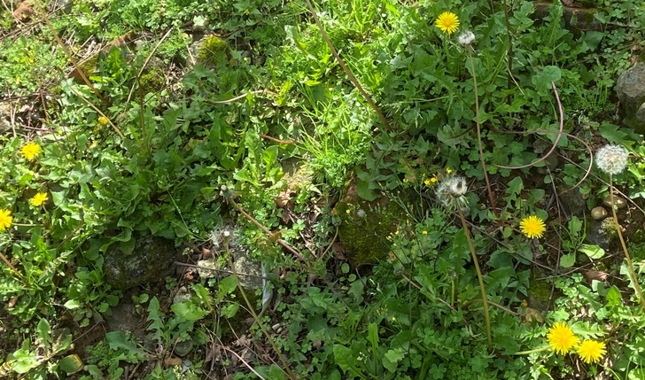 可能是因為近期天氣的寒冷和接連不斷的降雨,許久沒有整理維護和修剪的綠地,雜草叢生,有些地方已經長得高過人的腰部了。在這些雜草中,以鬼針草最為囂張,籬笆邊、樹叢下,長得又密又高,霸佔了大部份的綠地,那黃蕊白花開得更是遍地皆是!許多開放後的黃花轉而成為帶著種子,有點像是棉花的白色花絮,或仍在莖幹上,或是隨風飄浮。其次便是蒲公英了,它的黃花也是到處可見,帶著種子的白色花絮也是隨風飄蕩。而醡漿草楚楚動人的紫紅色小花,則開滿籬邊、路旁和樹下。此外,一些我不認得的野草花,也在園地裡恣意的開放著。