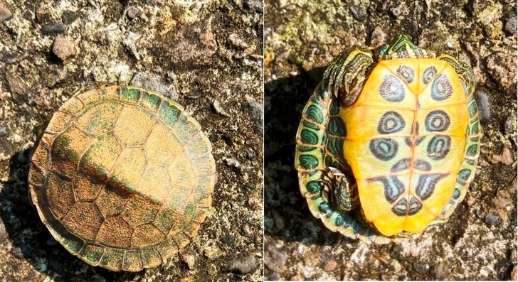 拇指般大的烏龜有怪異圖案的腹部