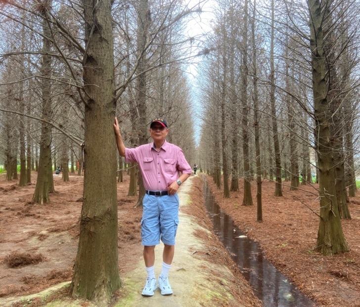 沒想到五年後的今天,那排落羽松竟已經長得那麼的高大、翠綠和茂盛了!五年前到那兒時,雖說是二月的冬天,樹葉都乾枯或脫落,但那些樹幹也是細細小小的,根本無法跟現在的粗壯相比。而讓我感觸最深的,卻是發現,五年前的自己仍然神采奕奕,不像現在顯得蒼老不少。