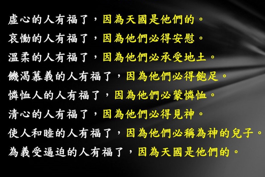 羊媽心得:主耶穌在馬太福音第5章一開始就論「八福」,那是天國子民應有的品德。在祂講完八福之後,安慰門徒說:「人若因我辱罵你們,逼迫你們,捏造各樣壞話毀謗你們,你們就有福了!應當歡喜快樂,因為你們在天上的賞賜是大的。」並提醒門徒在世上要作鹽作光,就是產生鹽和光的作用。