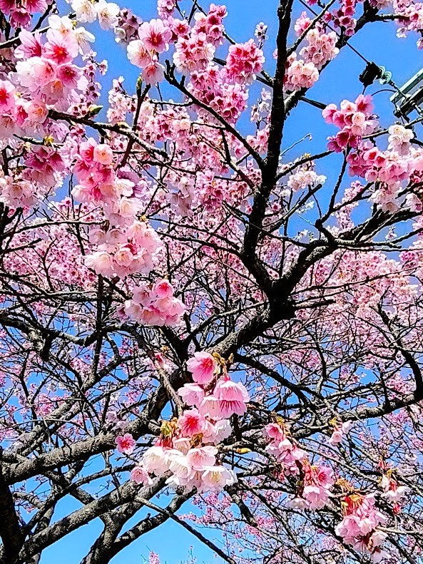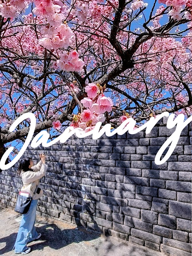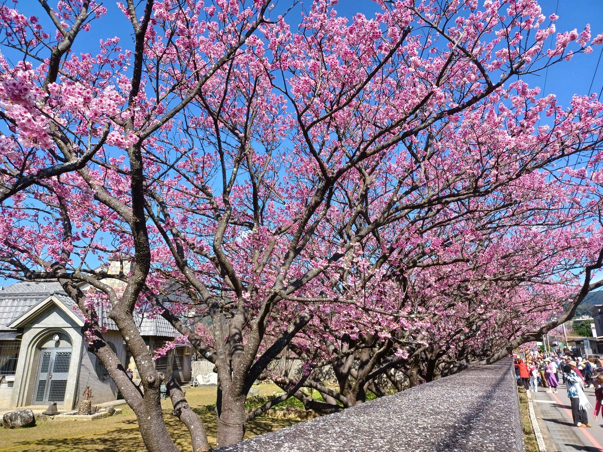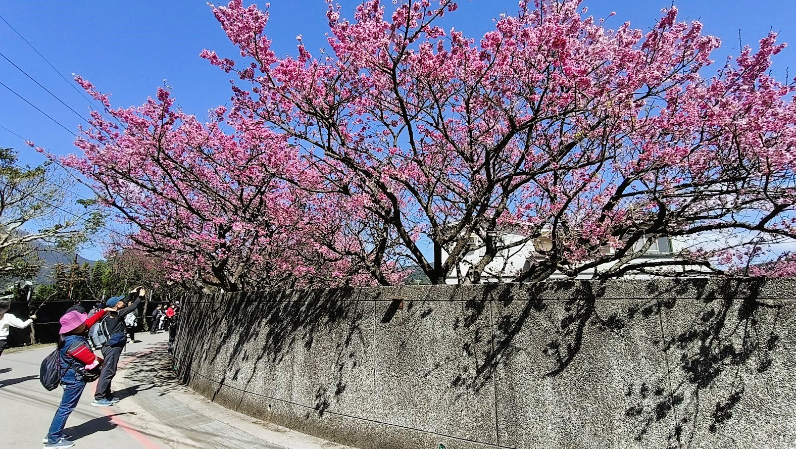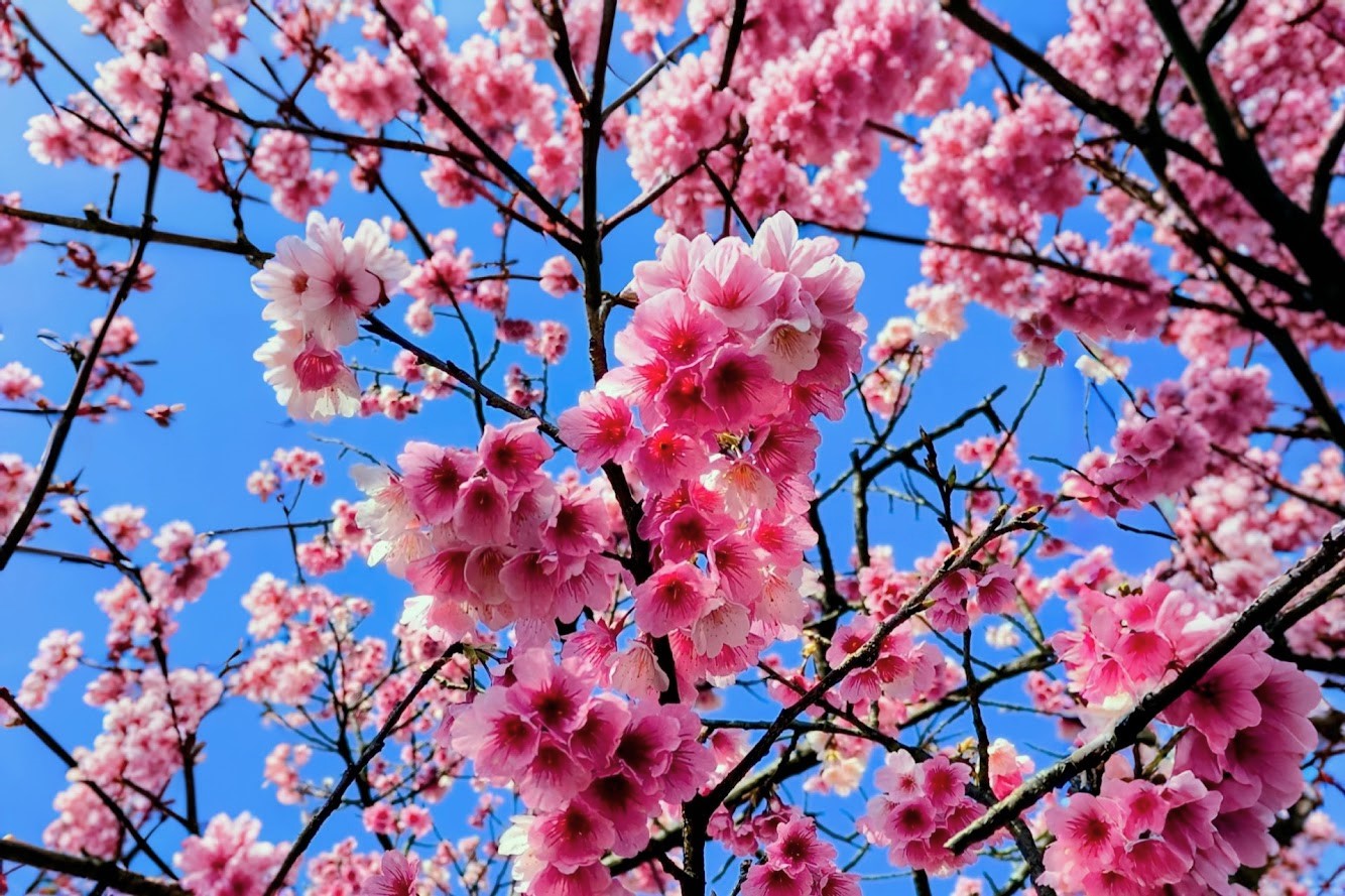 春節期間走春,先上陽明山賞櫻,品種是寒櫻,這裡是台灣櫻花季最早盛開的地區,早期平菁街42巷只是一些攝影愛好者的拍攝秘境,後來透過網路的傳播,年年一、二月份人潮爆滿,號稱全台最美櫻花巷,人手一機拍好拍滿,藍天粉櫻隨便拍都很美。